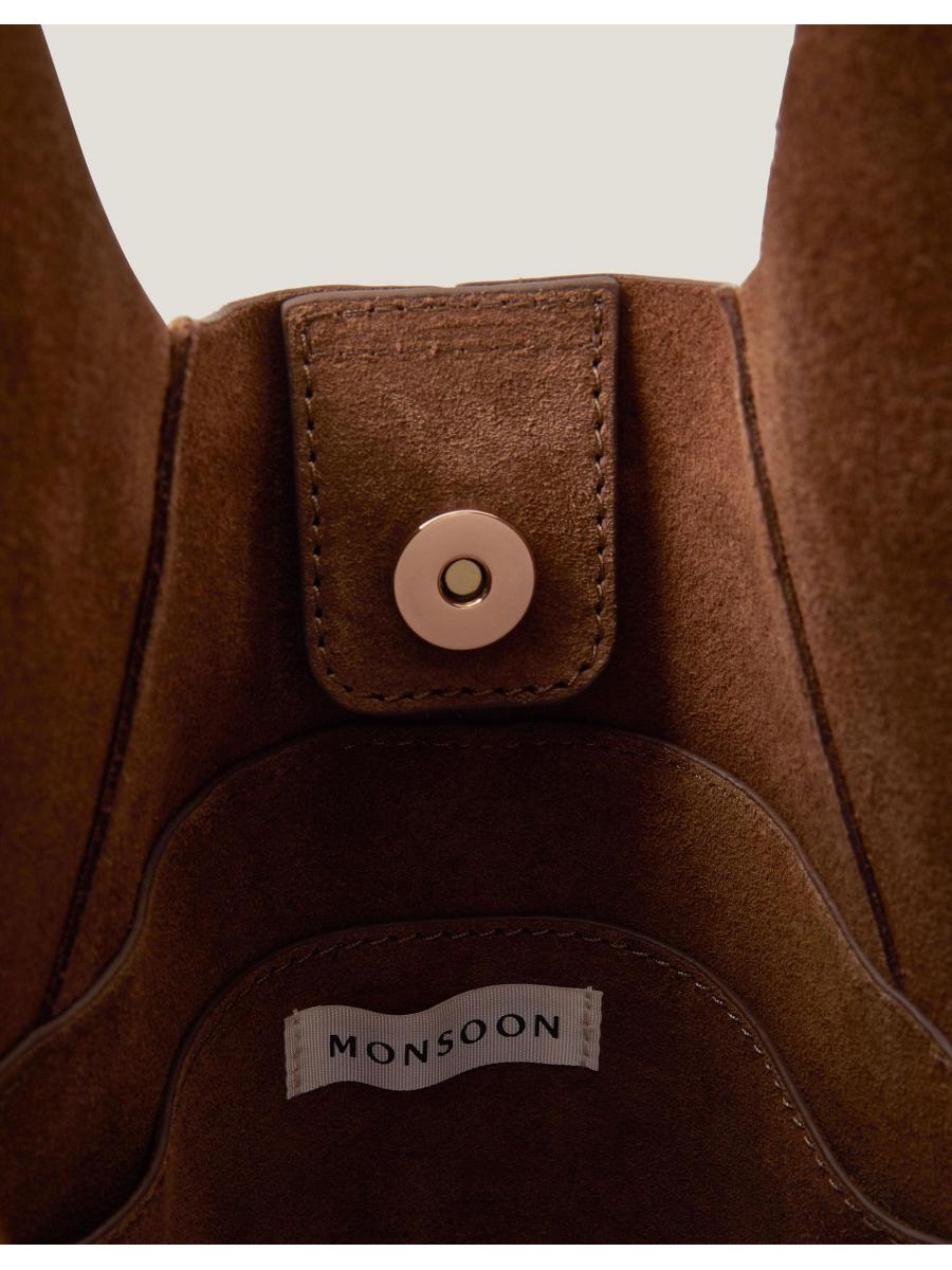 Description What's Autumn without some suede? Designed with stitched panels to give it a chic slouchy shape, this shoulder bag features internal pockets and a secure button fastening. And thanks to the timeless tan tone, it's ready to go with everything in your wardrobe. Details Fabric & Details Outer: Leather (Cow) 100% W 36 cm x L 14 cm Wipe clean Magnetic Snap Plain Weight: 820.0 ID: 1000972768b-details__content-item"> Outer: Leather (Cow) 100%