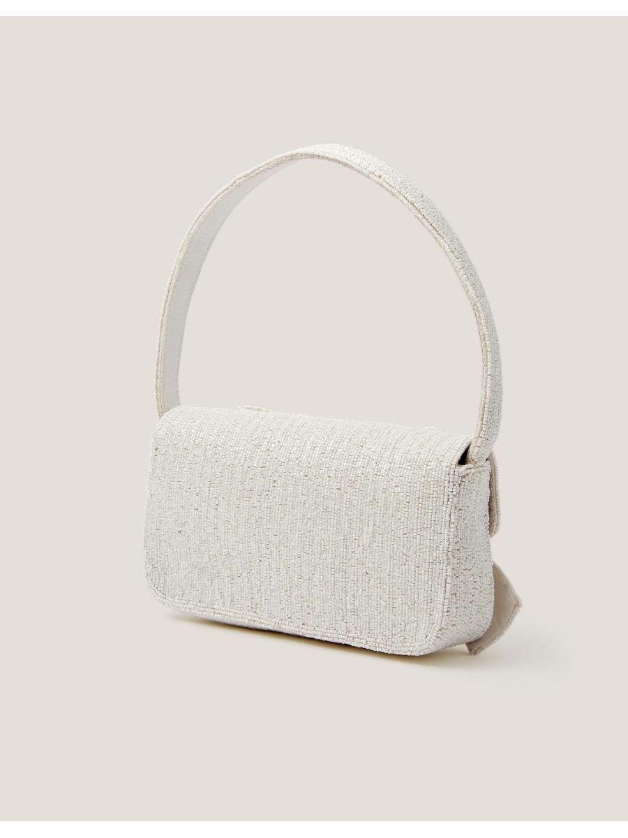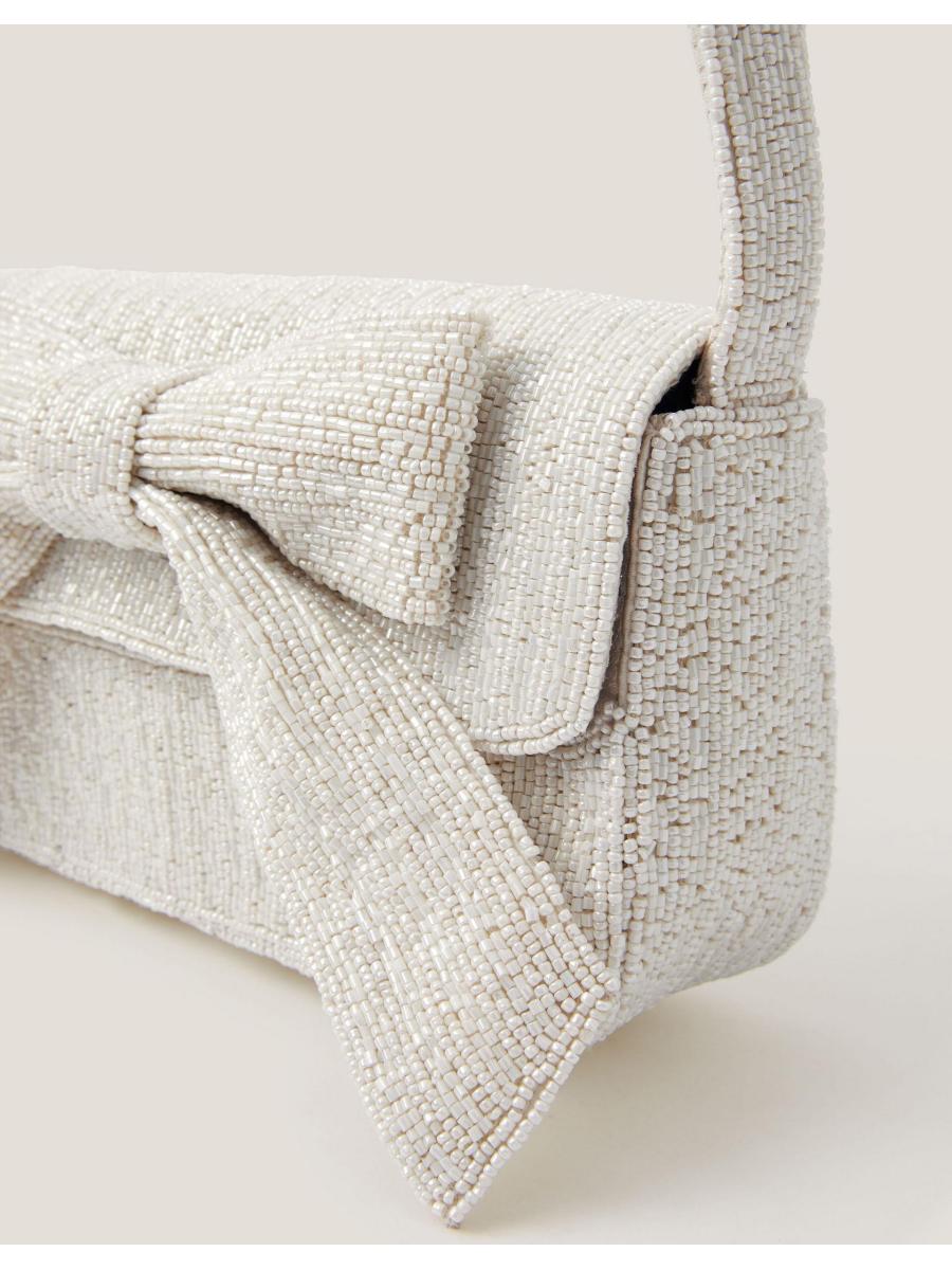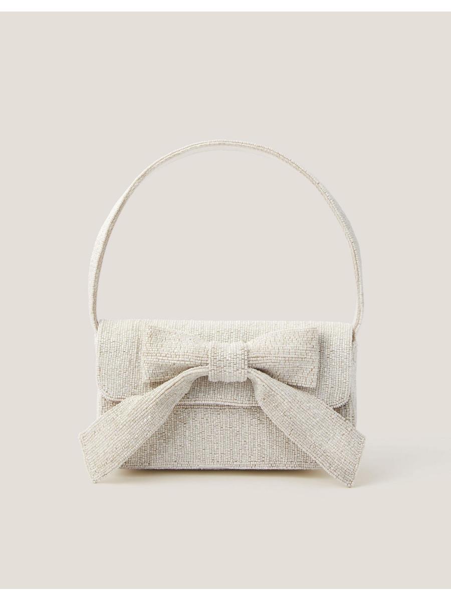 Bow-tiful bride. The only accessory you need by your side, this bag has been covered in faux pearls and topped with a precious bow. Whether you're hosting an engagement party or heading out for your hen night with the girls, it's a piece you'll cherish.