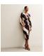 Purple Satin Patterned Wrap Midi Dress