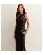 Dark Brown Satin One Shoulder Tie Waist Dress