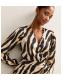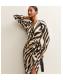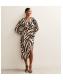 Black Zebra Print Satin Tie Waist Midi Dress