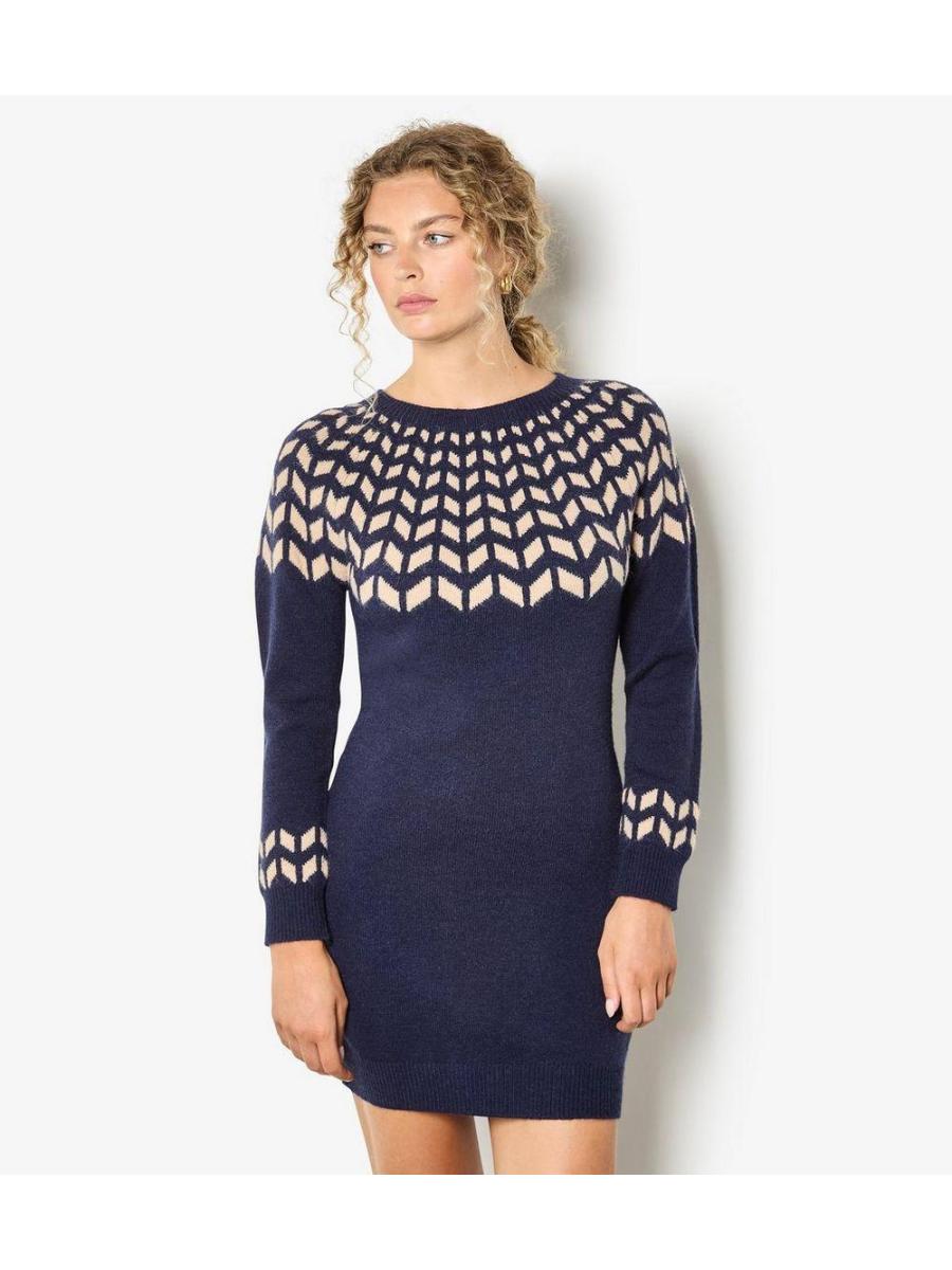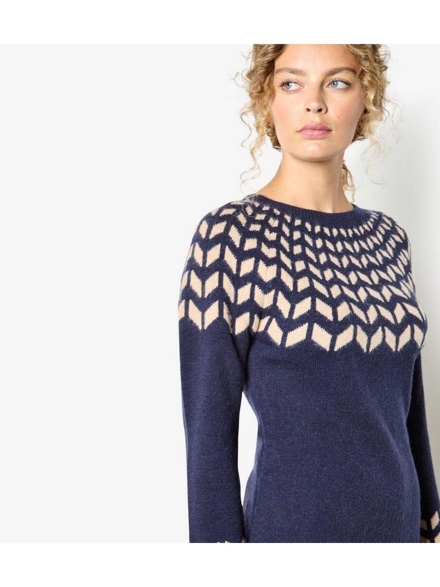 Apricot Navy Gradient Chevron Knit Jumper Dress