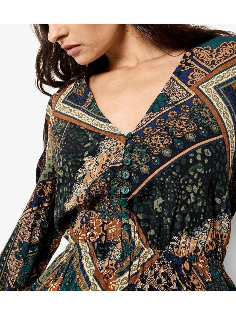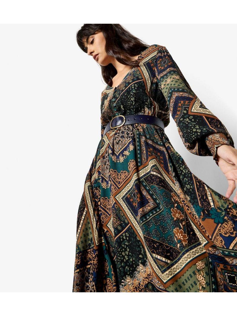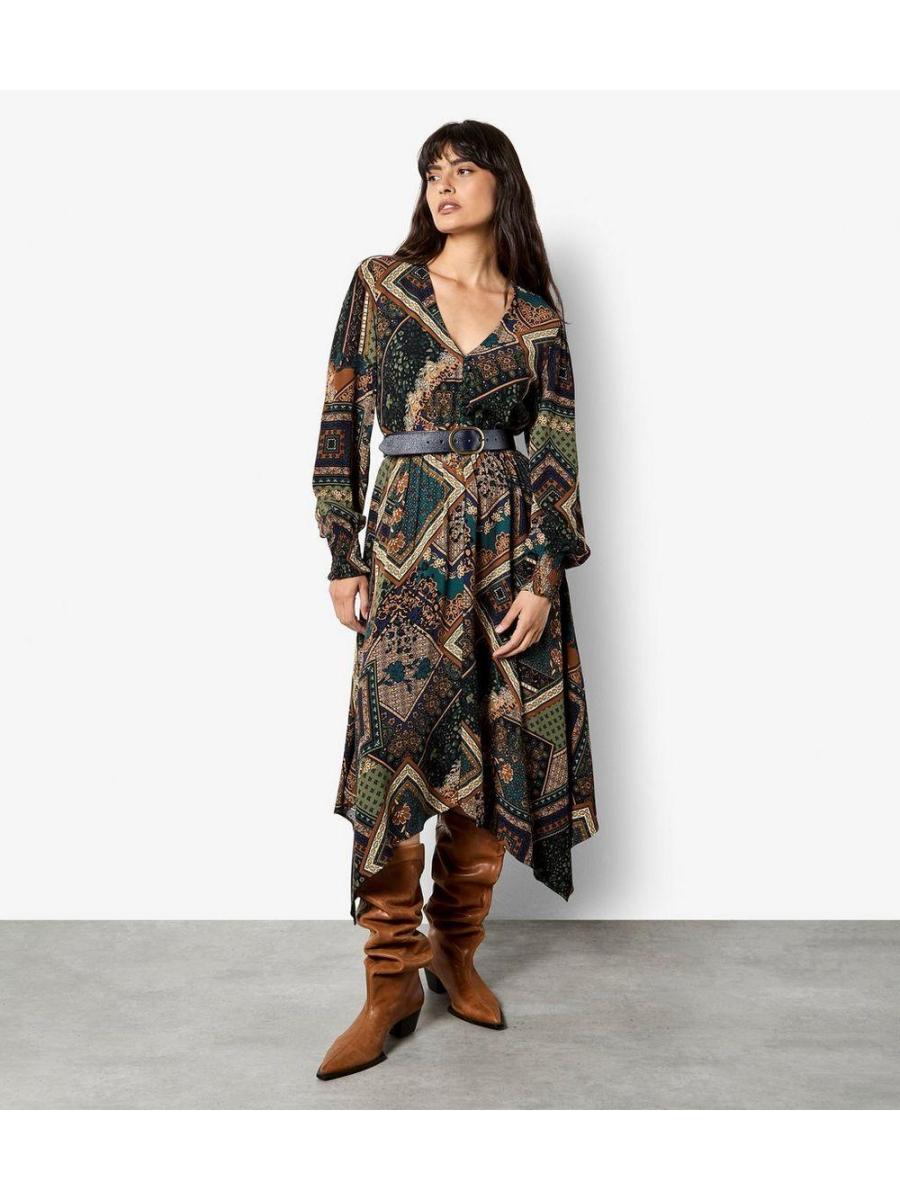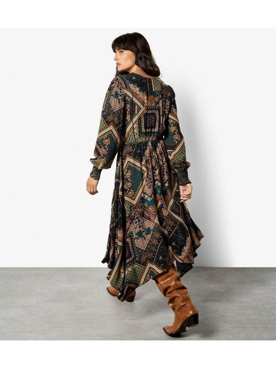Apricot Green Patchwork Hanky Hem Midi Dress