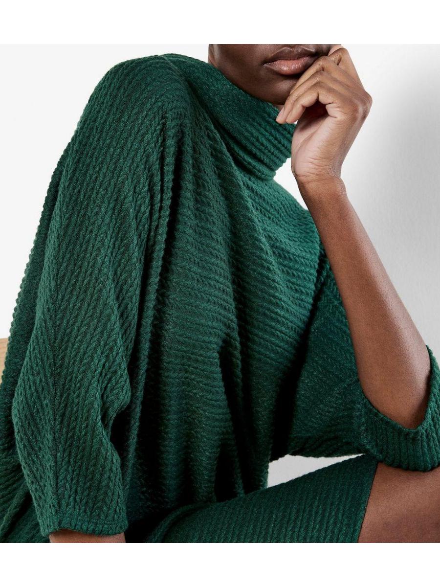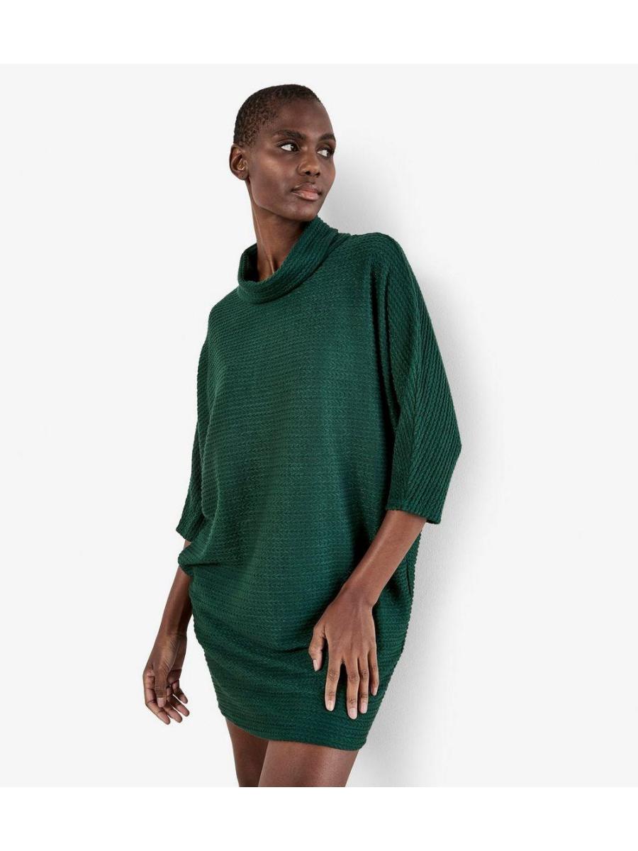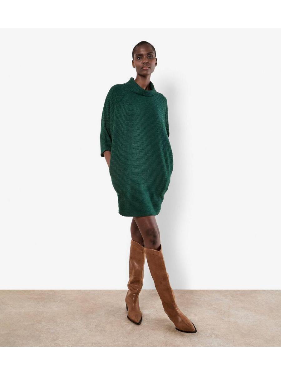 Apricot Dark Green Cable Soft Touch Mock Neck Dress