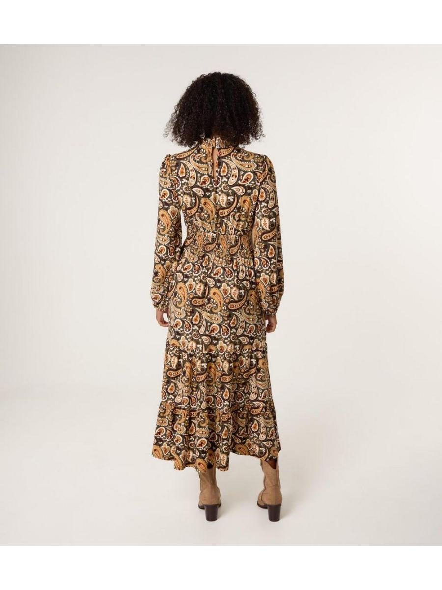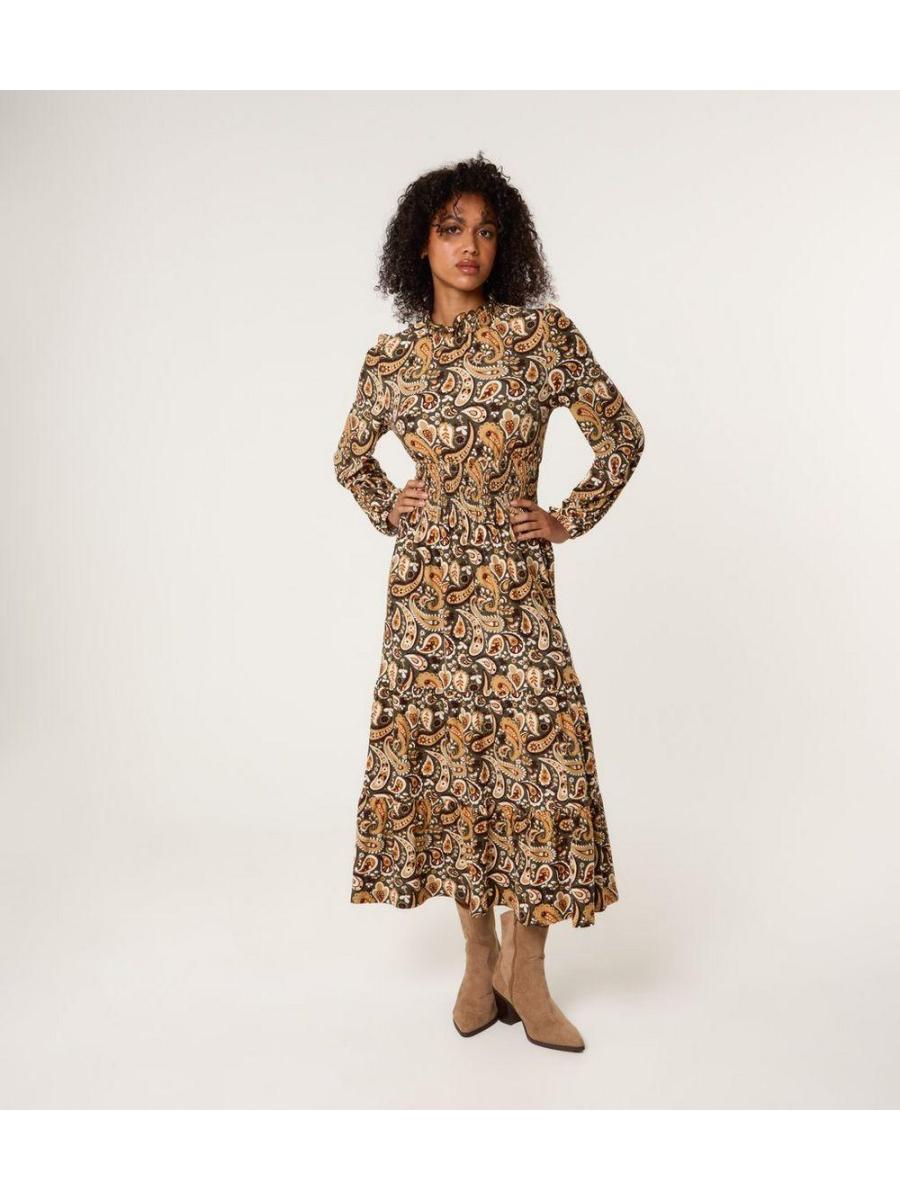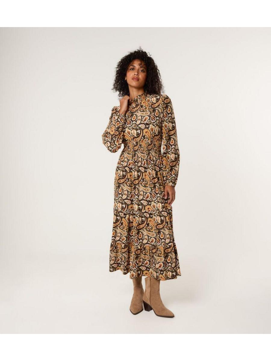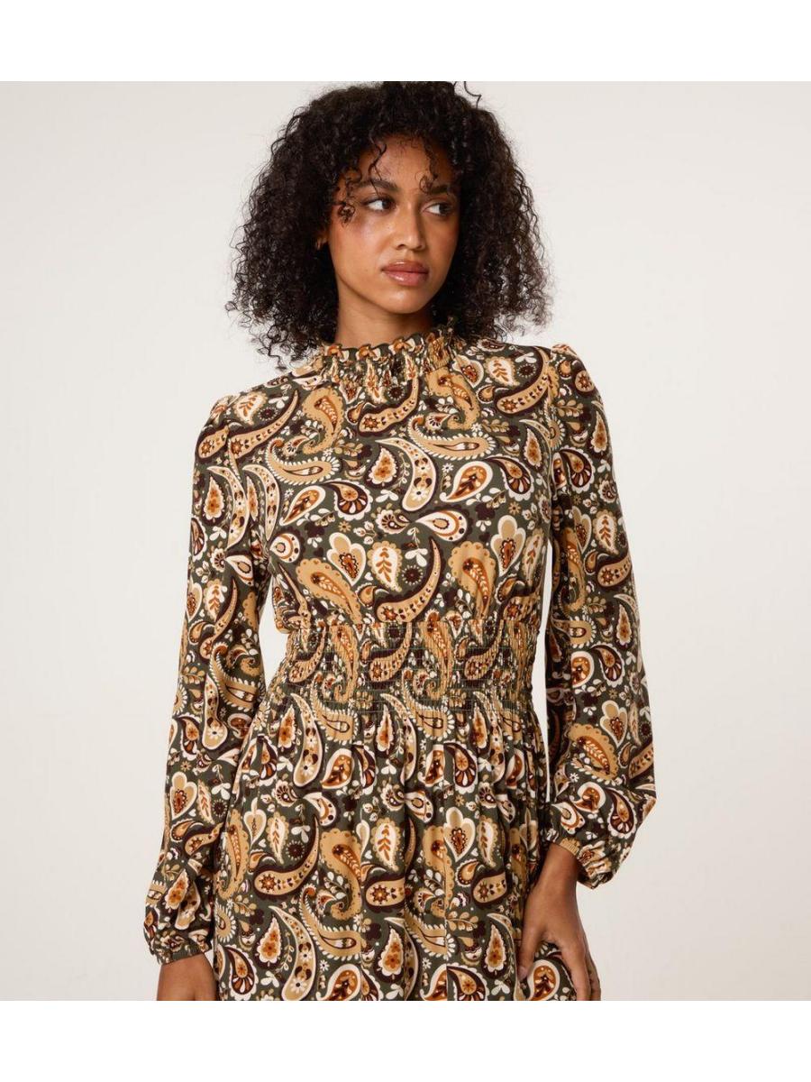 Blue Vanilla Khaki Paisley Print High Neck Midi Dress