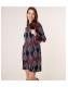 Blue Vanilla Navy Geometric Pattern Draped High Neck Dress