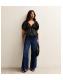 Petite Black Jacquard Twisted Front Puff Sleeve Top