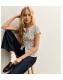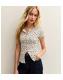 White Ribbed Floral Print Button Through Top