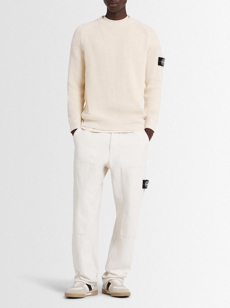 Raw Beauty棉质渔夫纹毛衣 - 象牙色 - 男士 - Stone Island - 罗纹边缘.