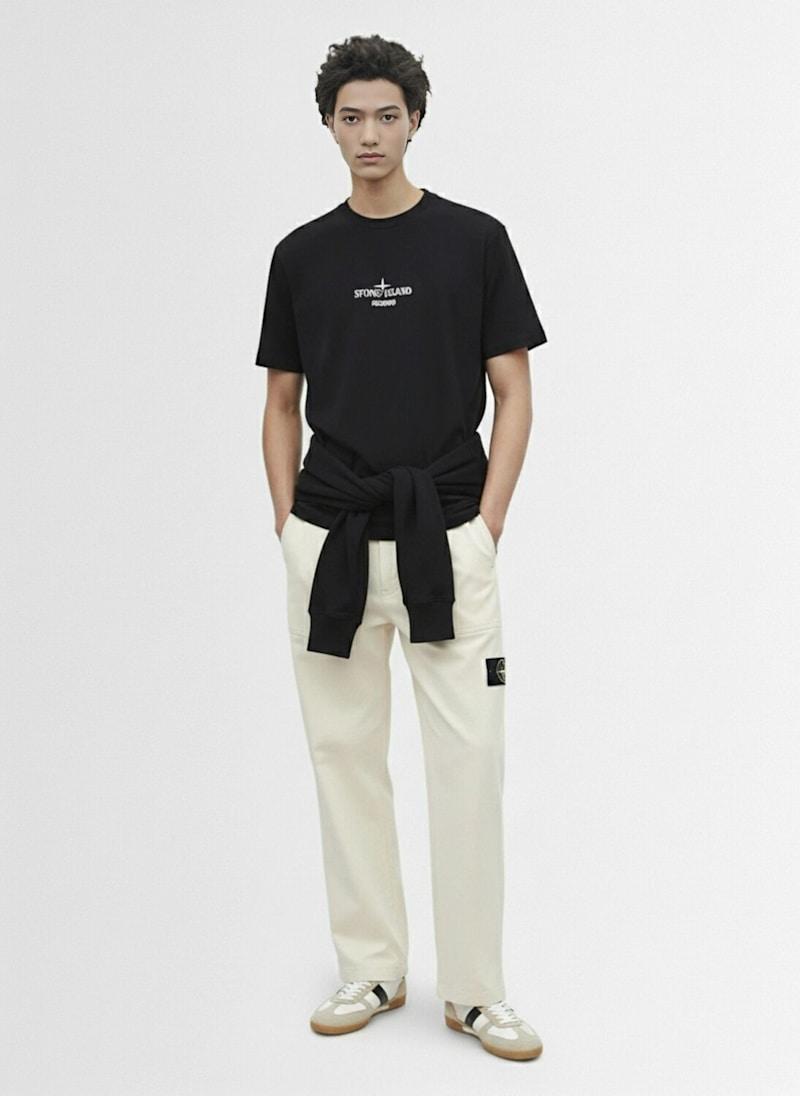 短袖棉质针织T恤 - 黑色 - 男士 - Stone Island - 圆领设计.