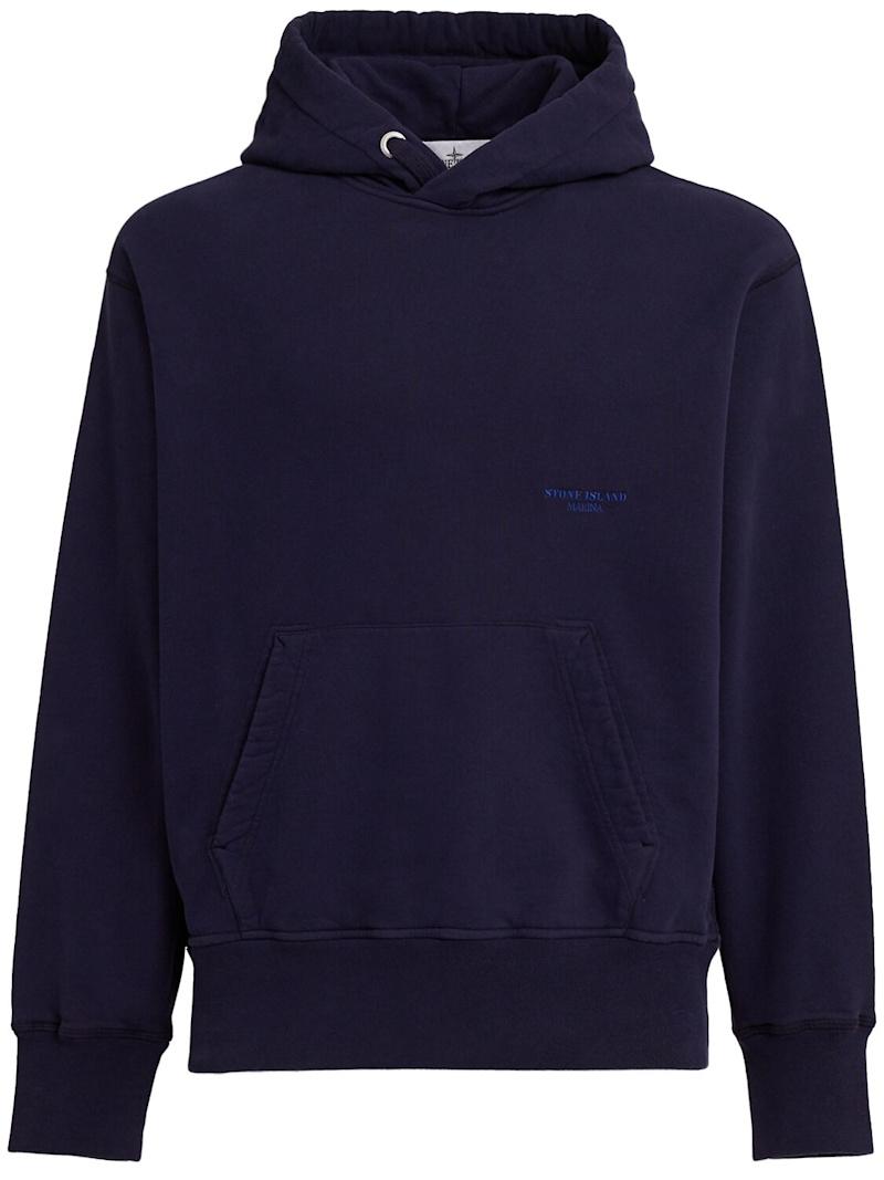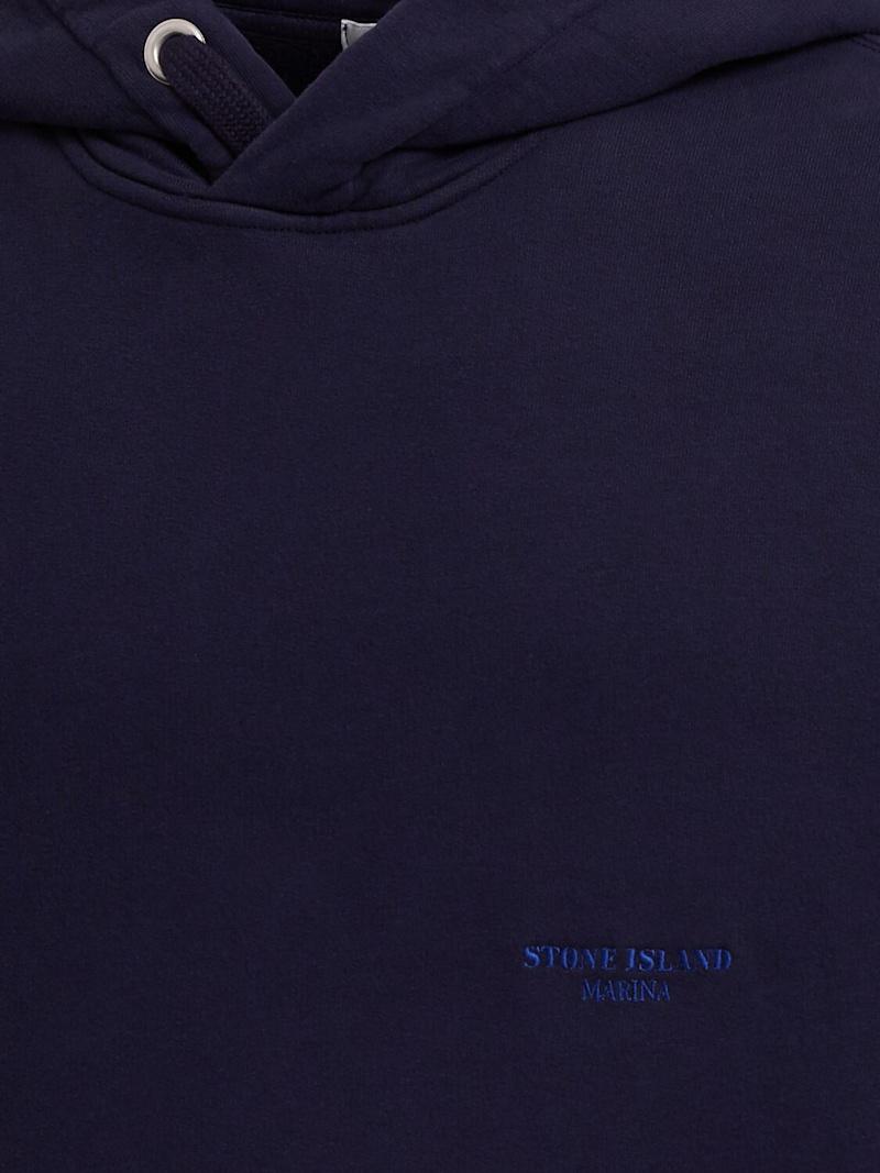 拉绒棉质连帽卫衣 - 海军蓝 - 男士 - Stone Island - 不可拆卸的风帽.