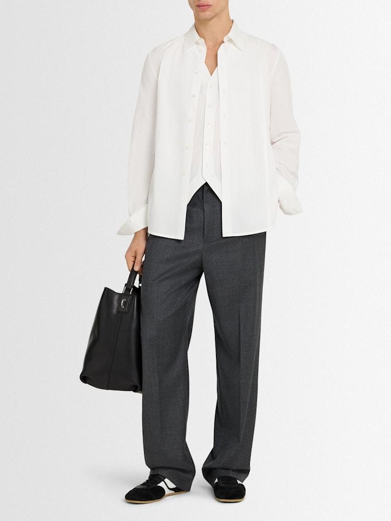 层叠棉质衬衫 - 白色 - 男士 - Eenk - 正面纽扣开合.