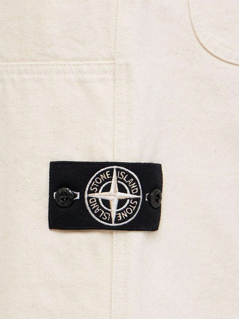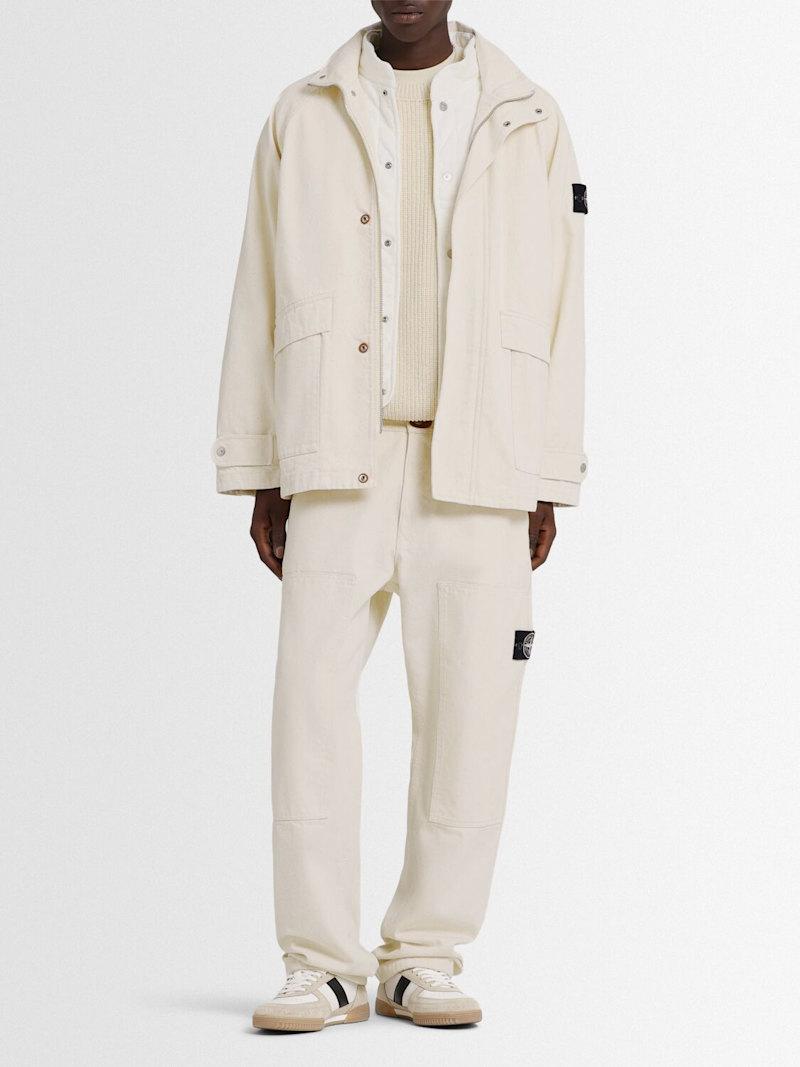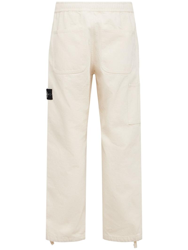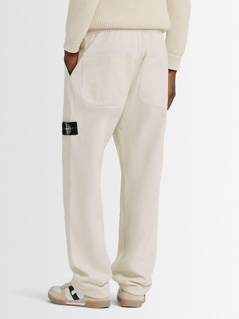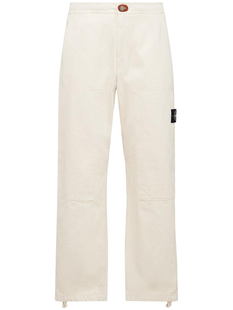 Raw Beauty棉质华达呢裤子 - 象牙色 - 男士 - Stone Island - 正面纽扣和隐藏式拉链开合.