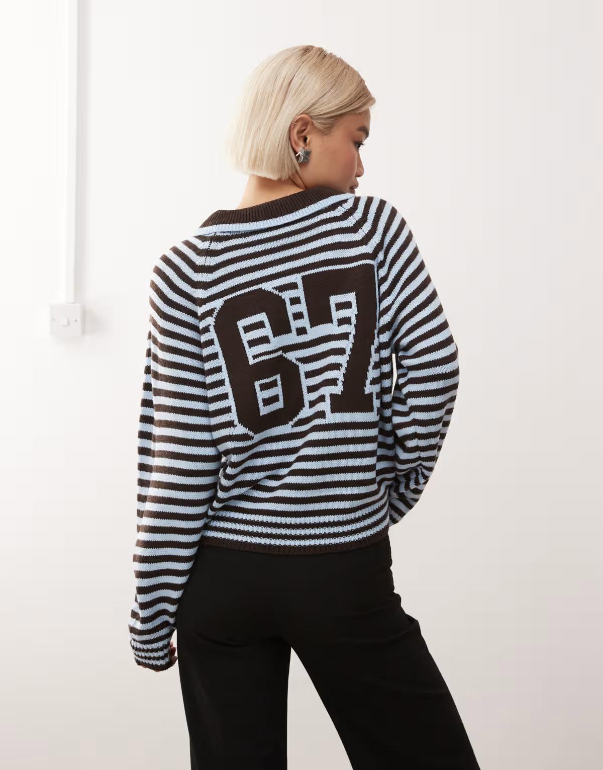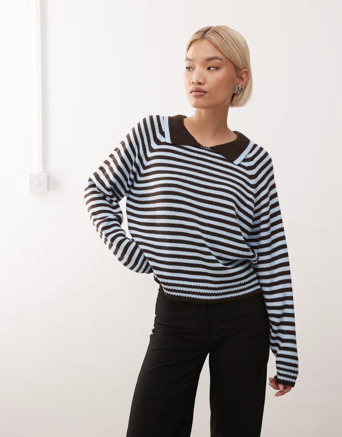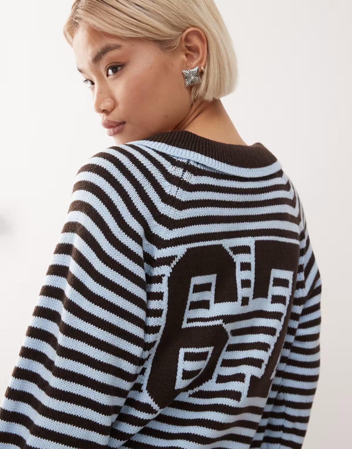 COLLUSION stripe knitted sporty polo
