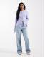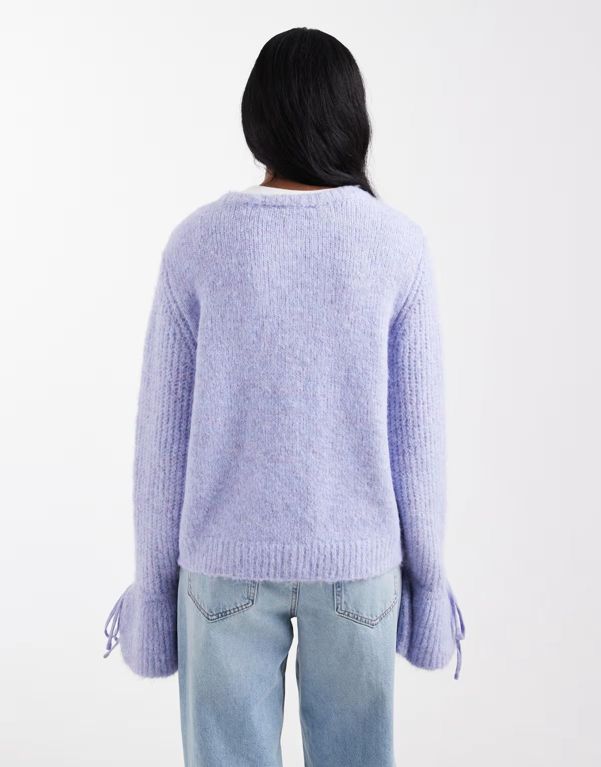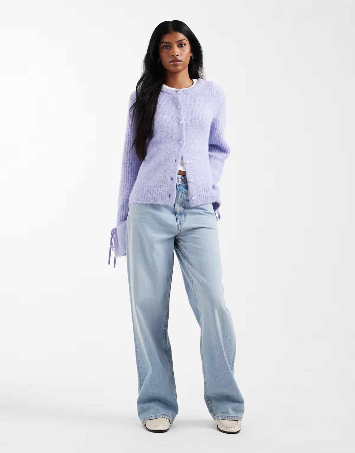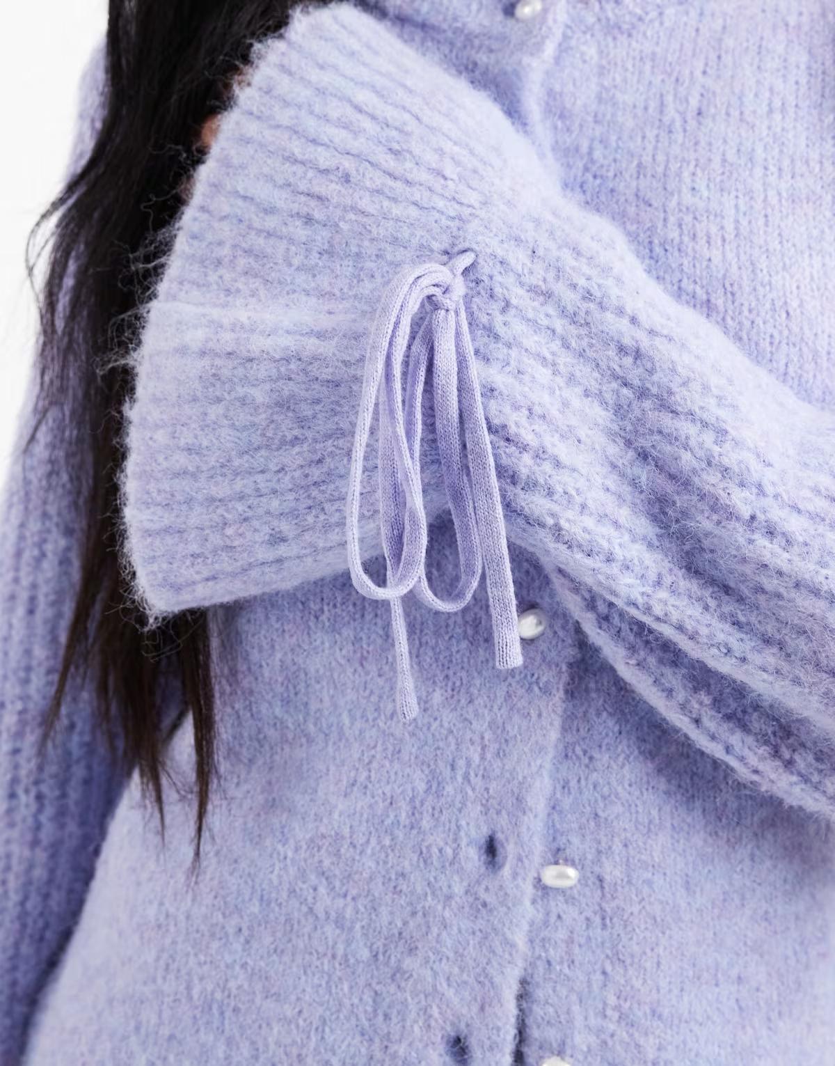 Object soft rib knitted cardigan with tie cuff detail in lavender
