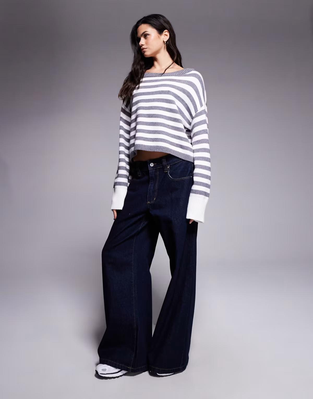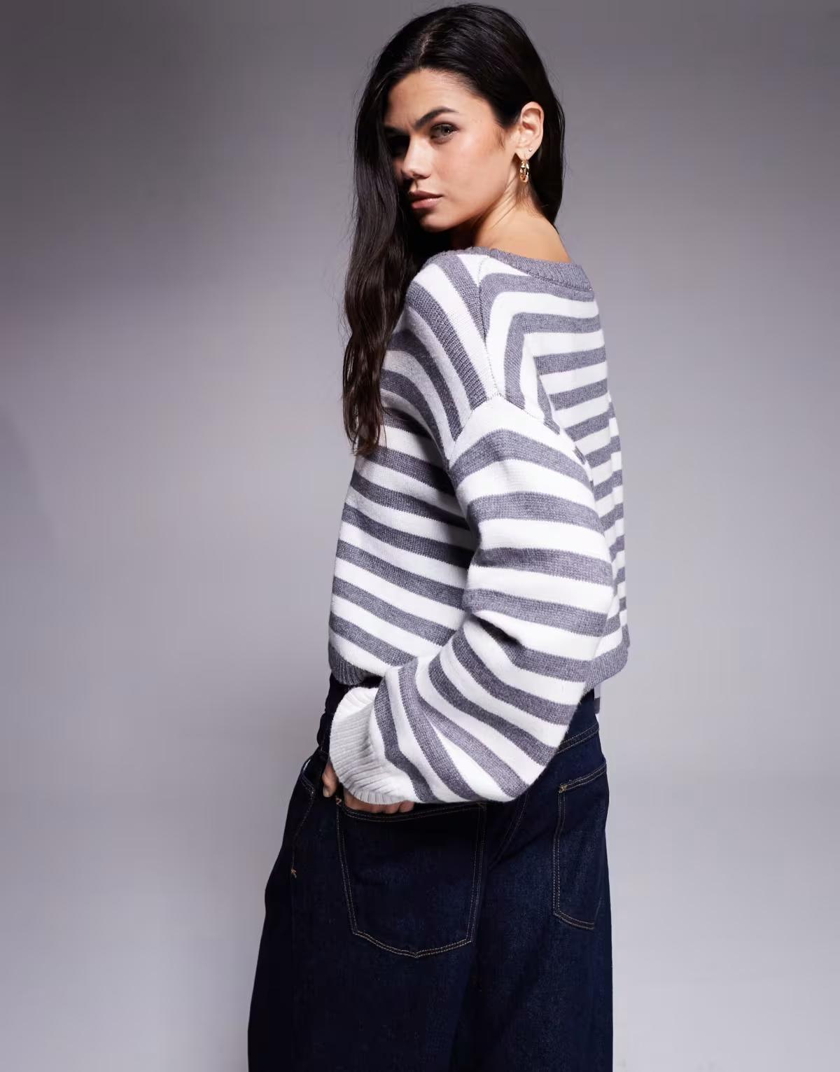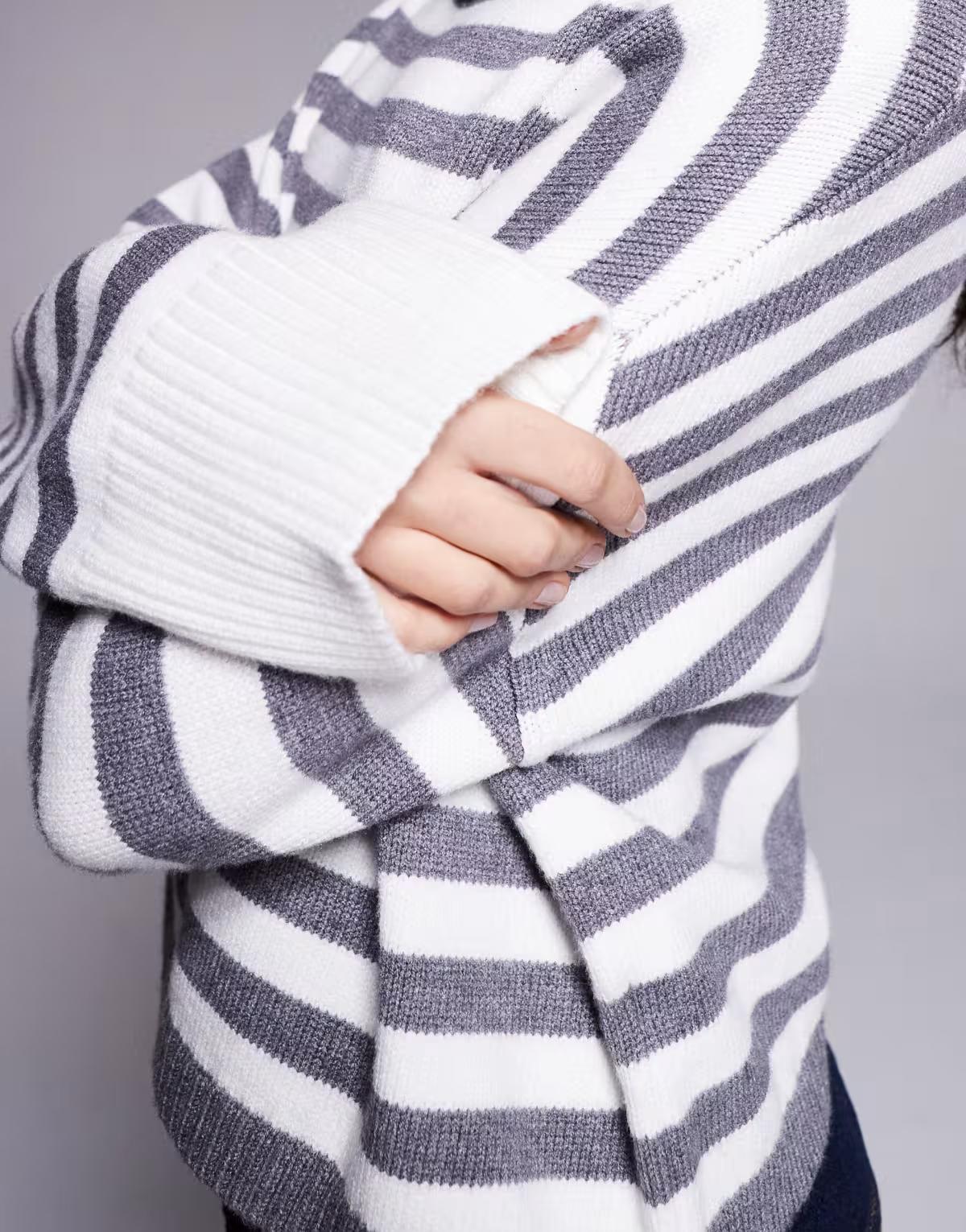 Edikted Saphi striped oversized sweater in grey