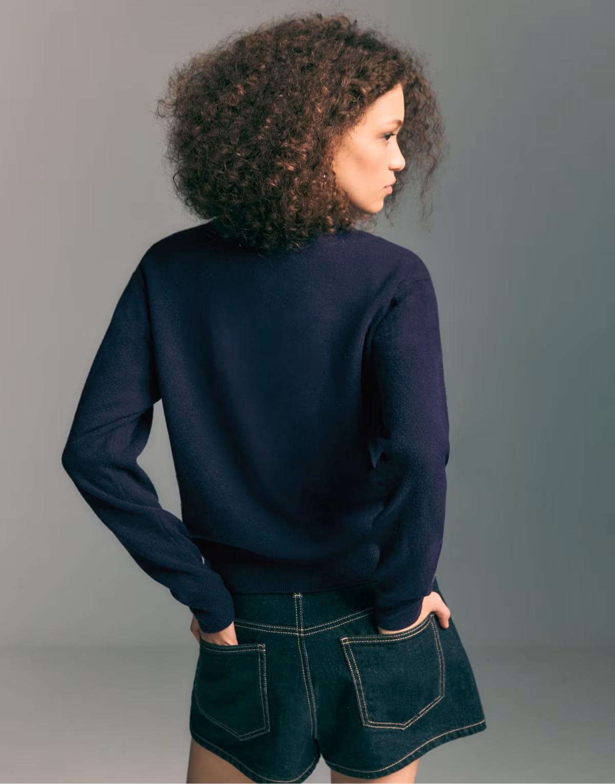 Stradivarius Soft-touch basic knit sweater in navy blue