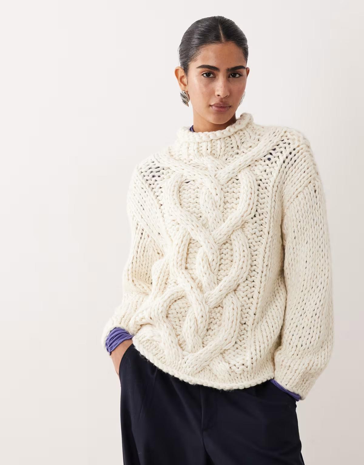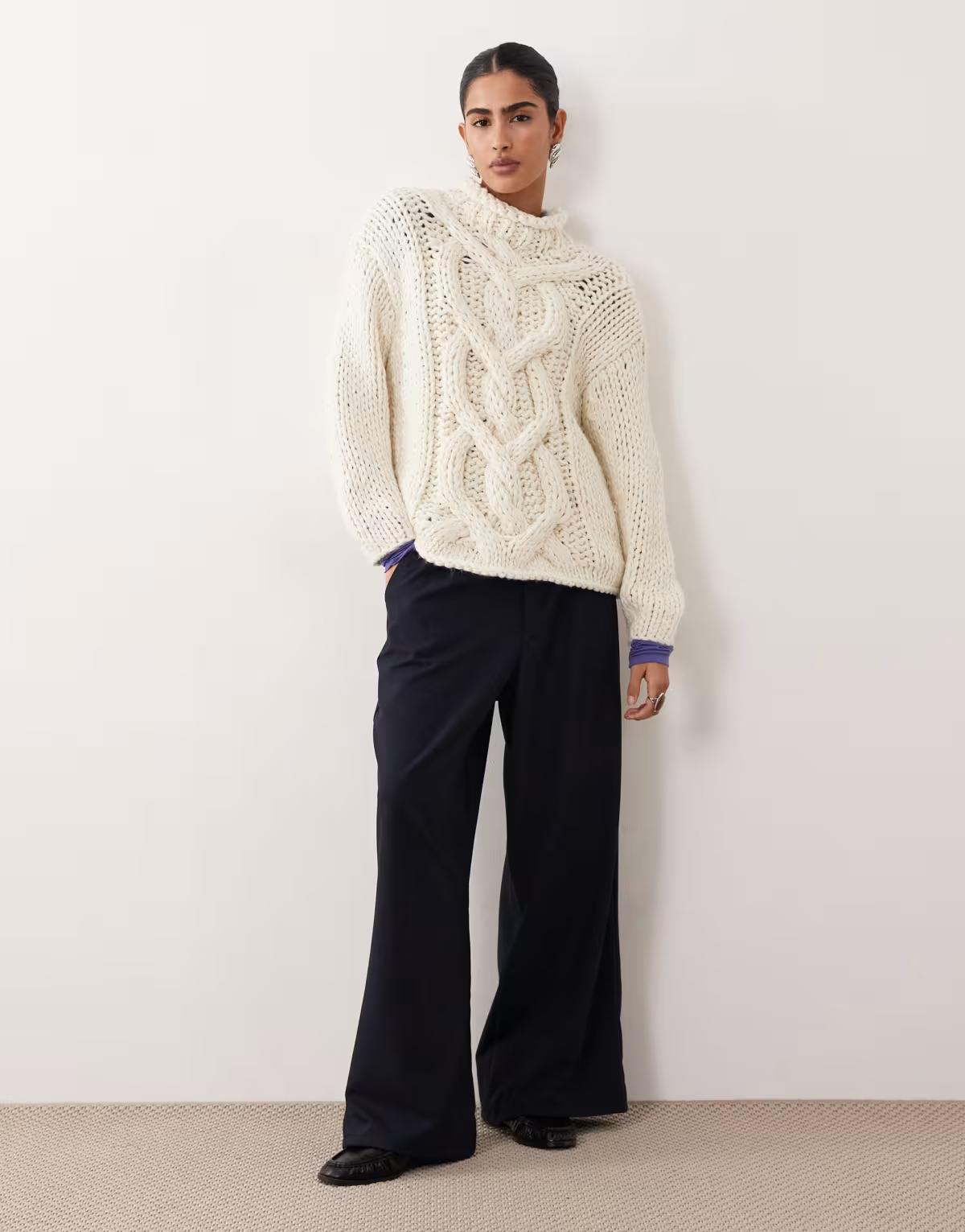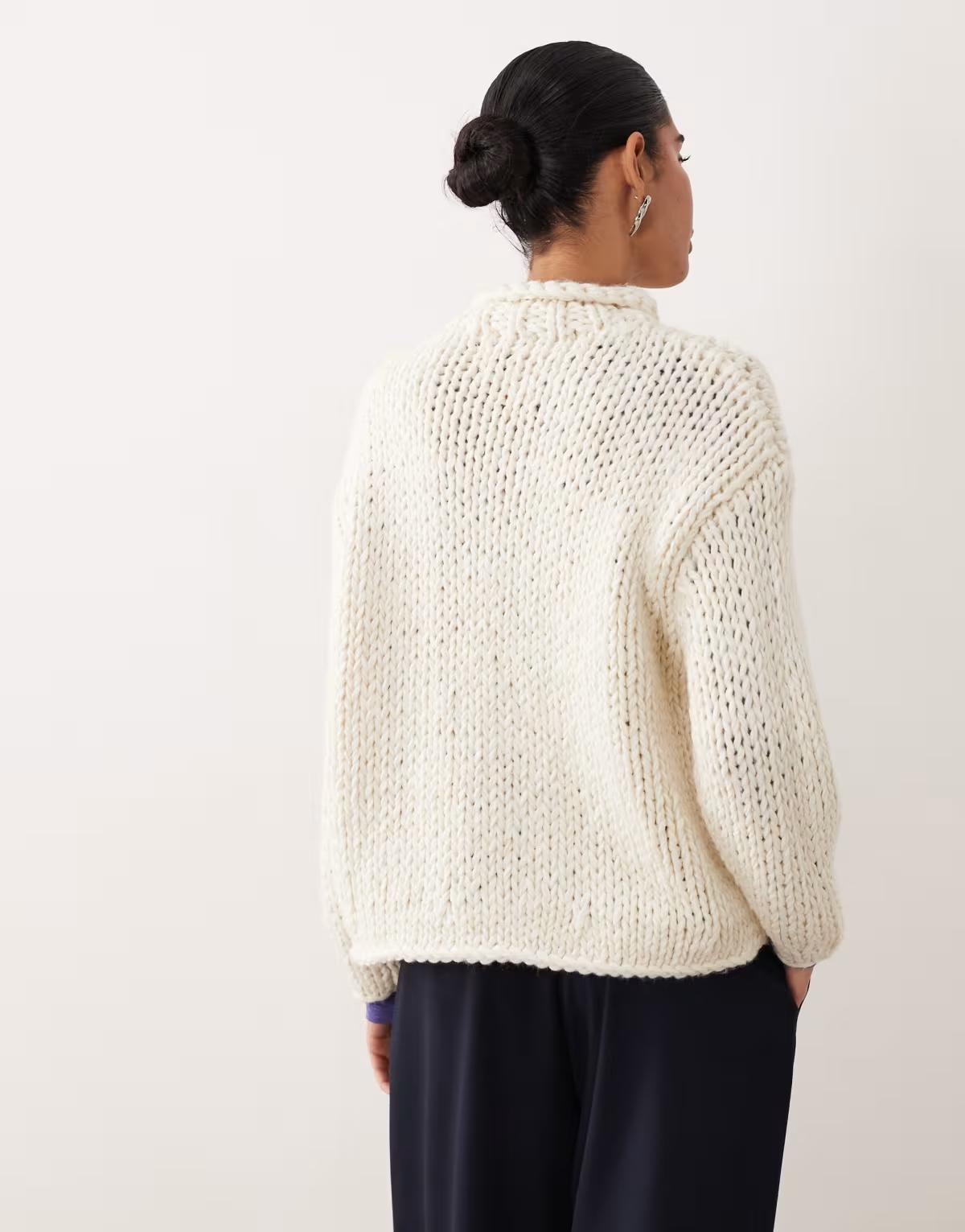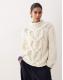 ASOS DESIGN hand knit chunky cable crew neck jumper in cream