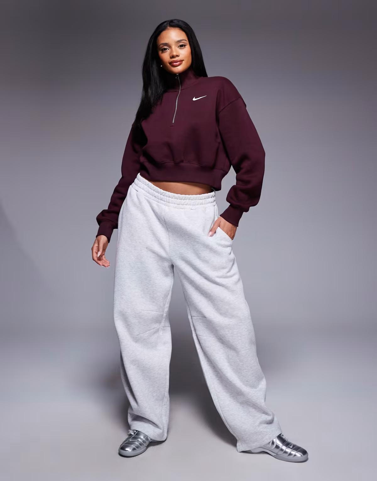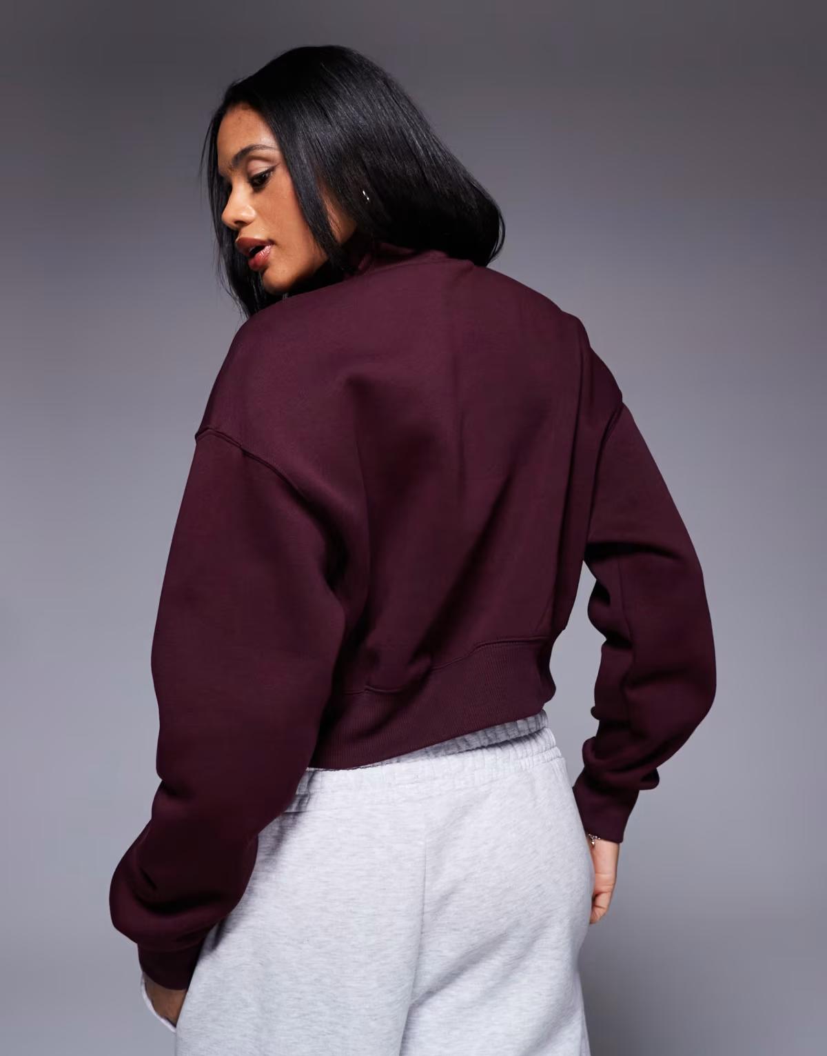 Nike Phoenix Fleece half zip cropped sweatshirt in burgundy
