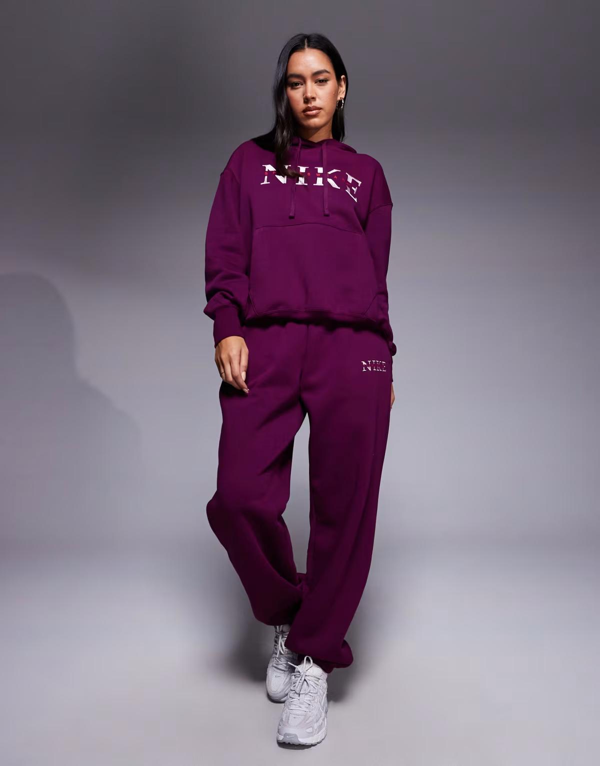 Nike Gym Life Swoosh graphic oversized hoodie in burgundy
