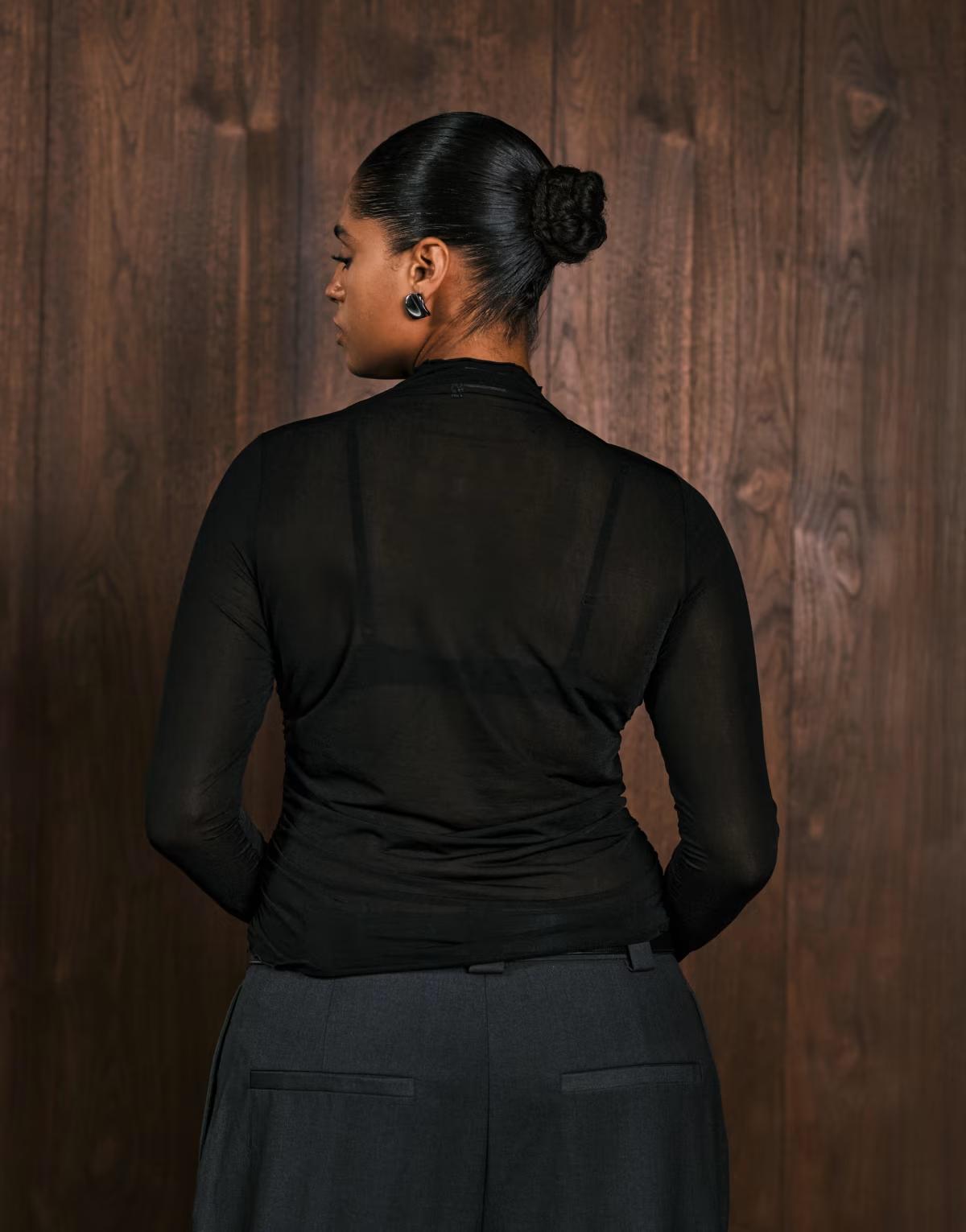 ASOS DESIGN Curve high neck mesh semi sheer long sleeve top in black