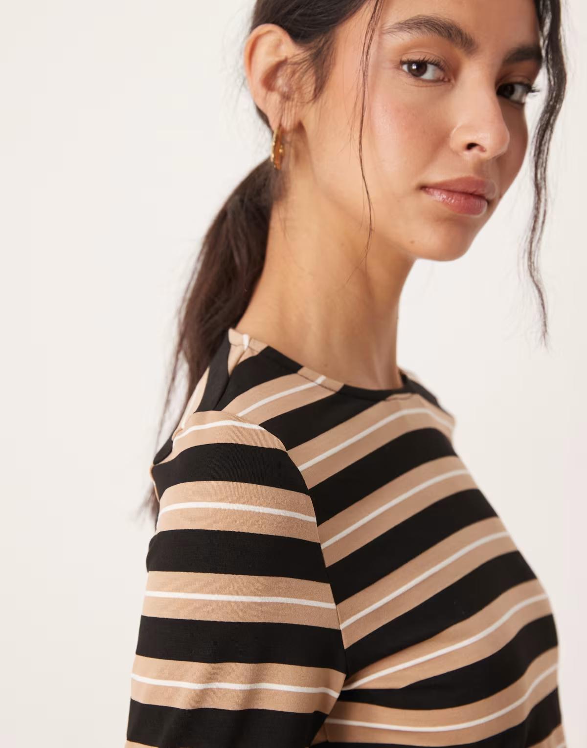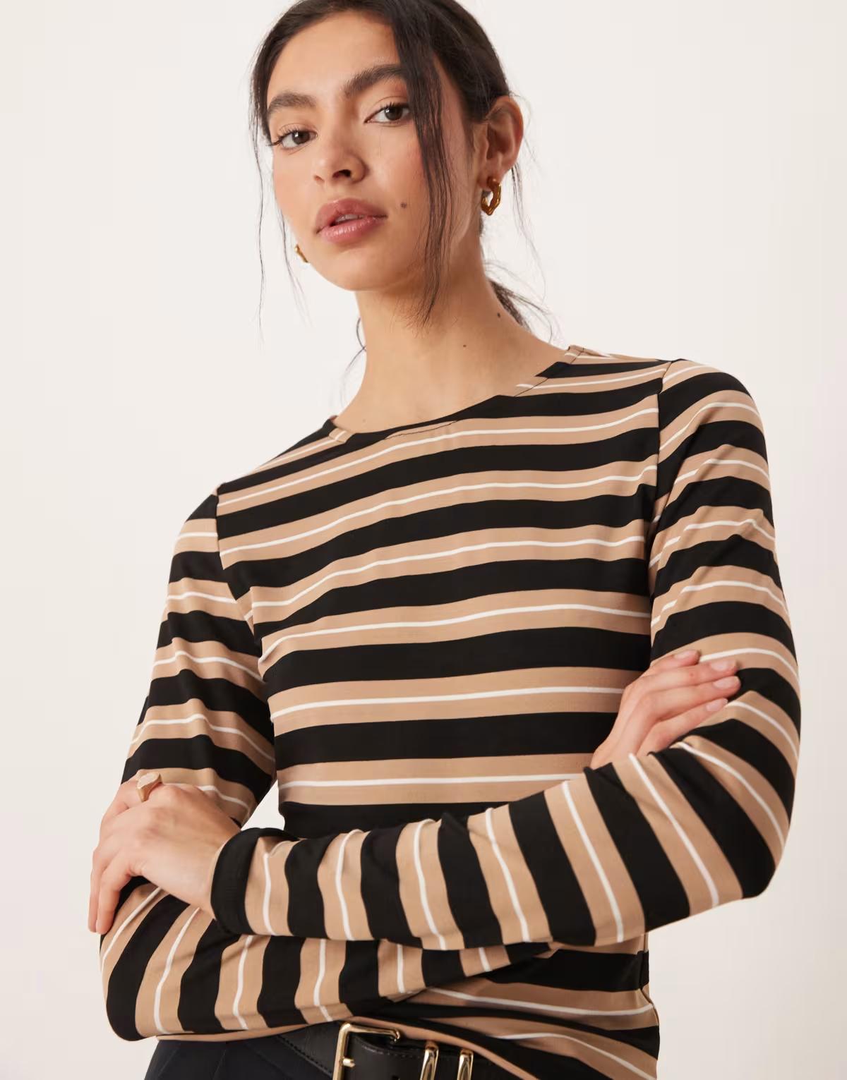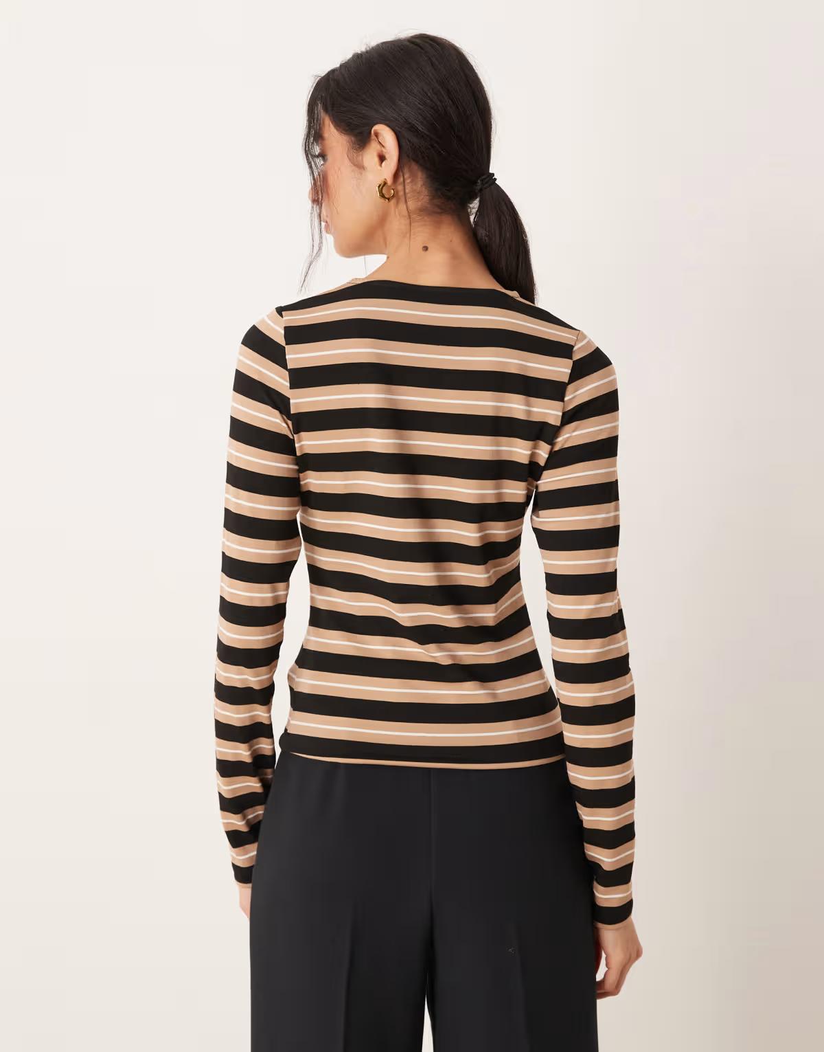 ASOS DESIGN long sleeve shrunken tee in neutral stripe