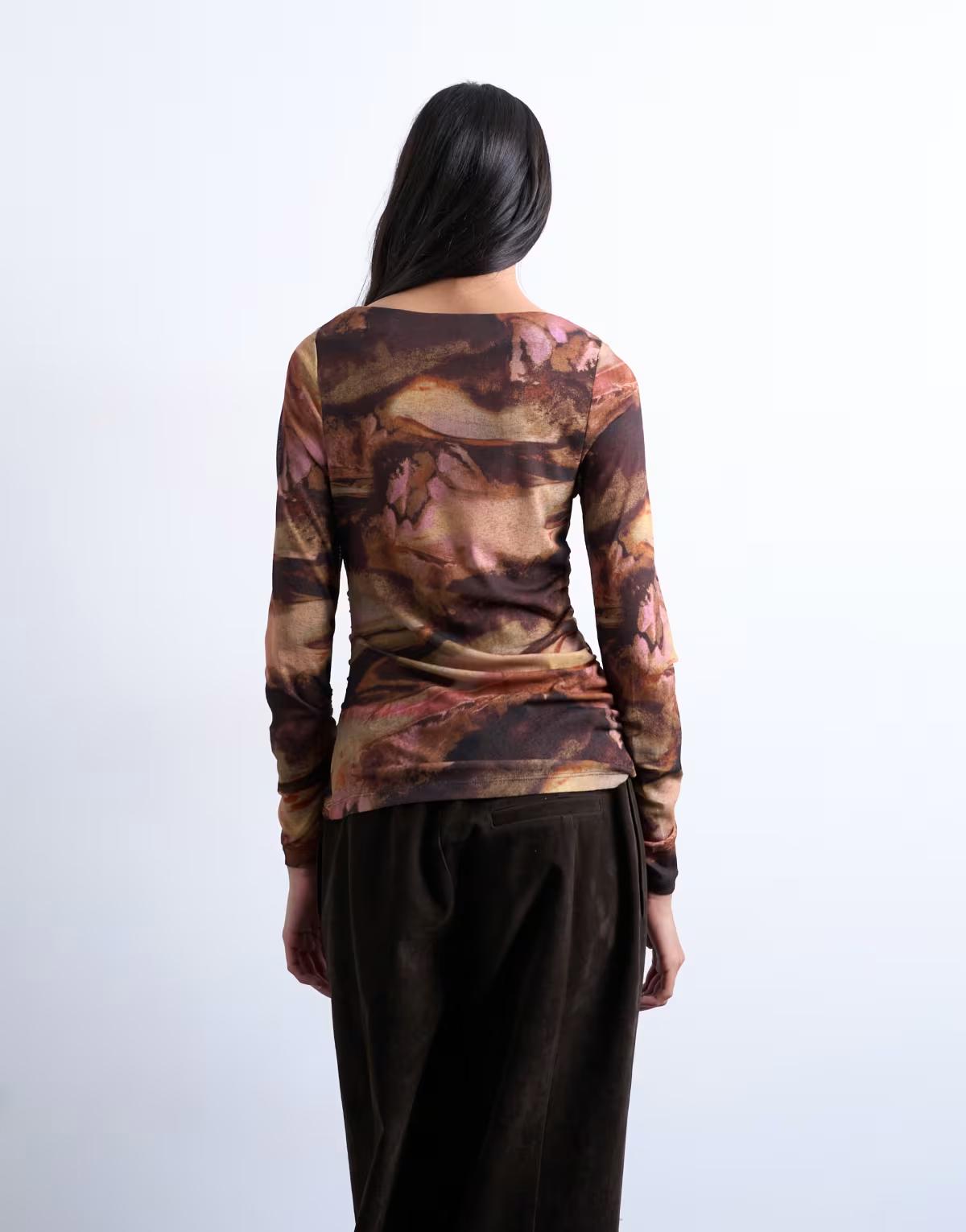 This top is crafted from a soft jersey in an abstract print. It features a round neck, long sleeves and is cut with a regular fit.
