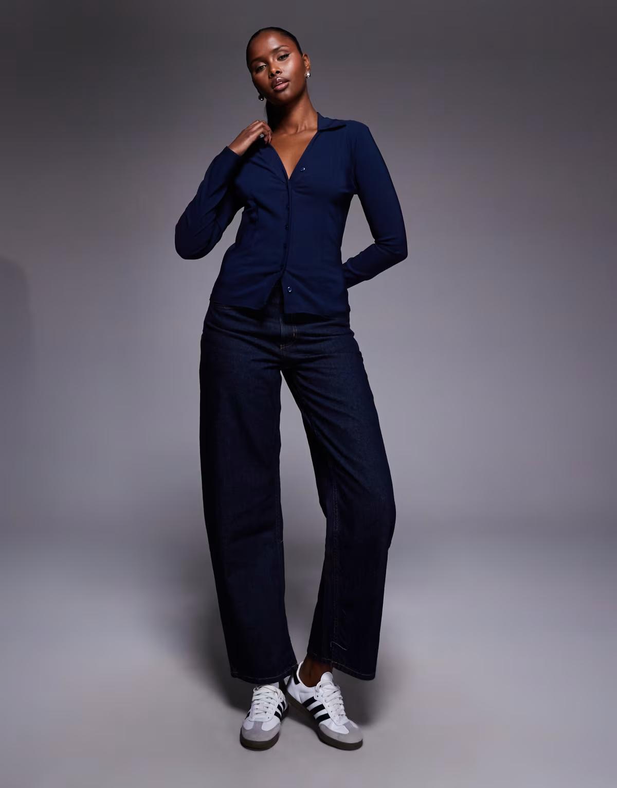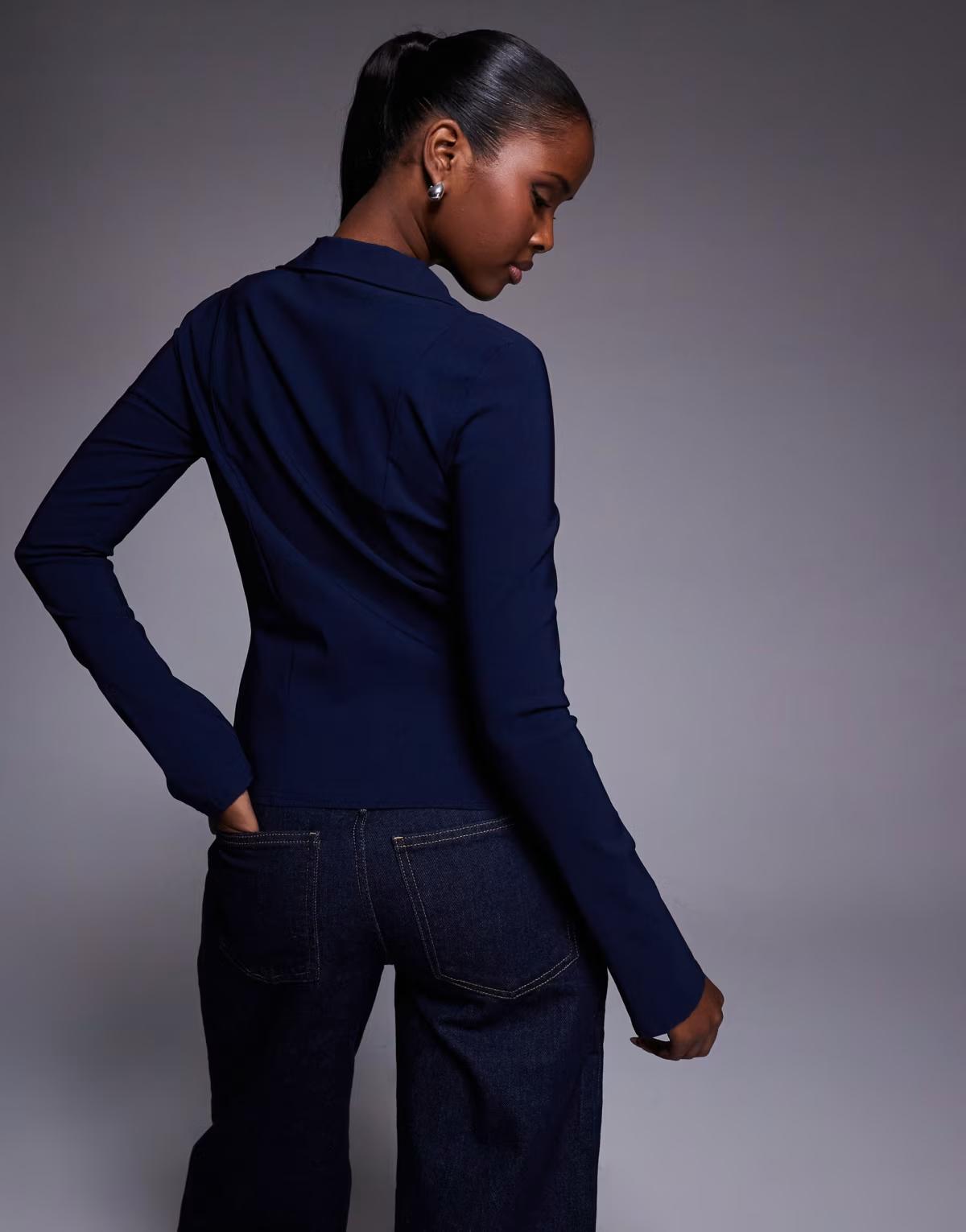 Fashionkilla bengaline flare sleeve fitted shirt in navy