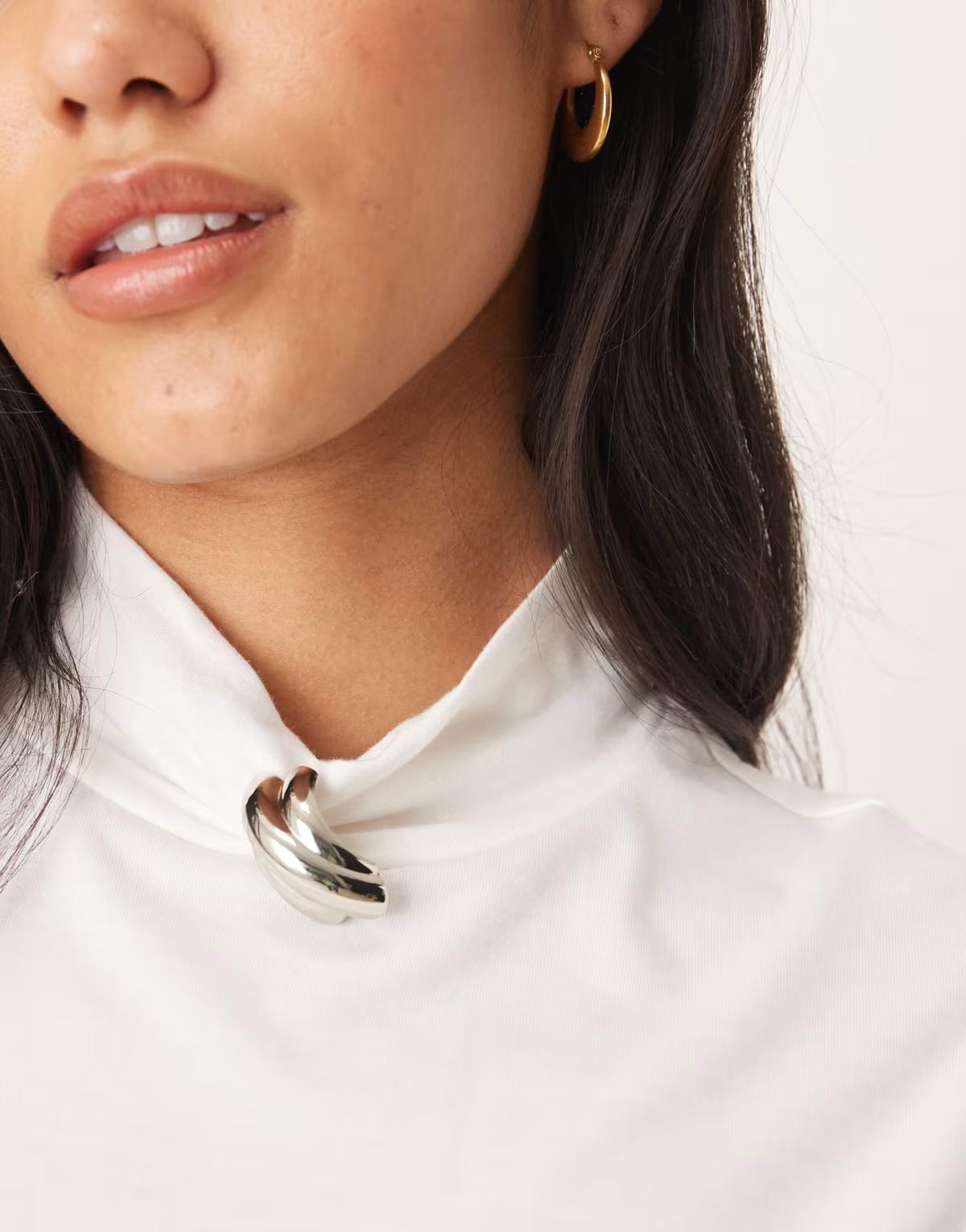 JDY brooch detail sleeveless high neck top in white