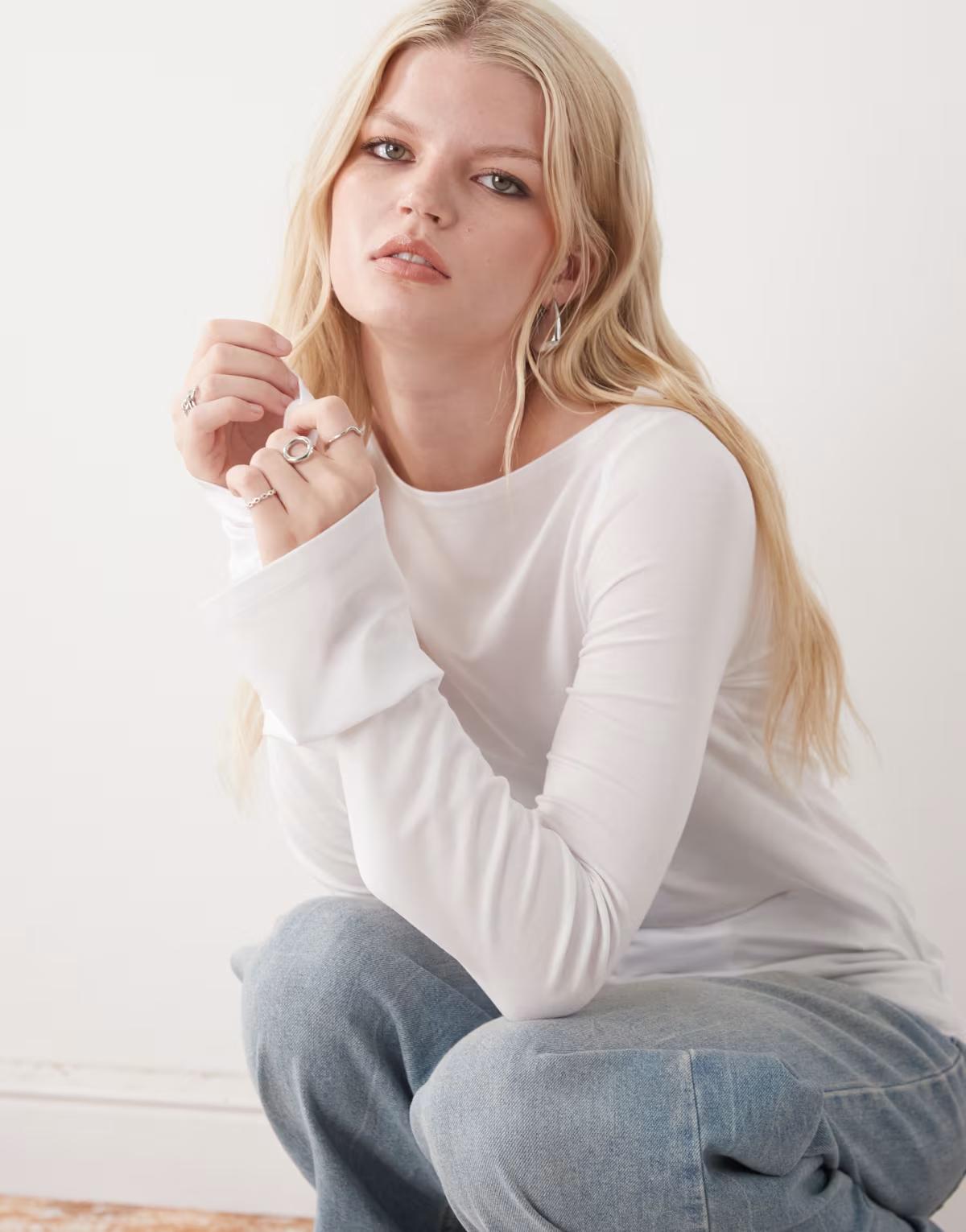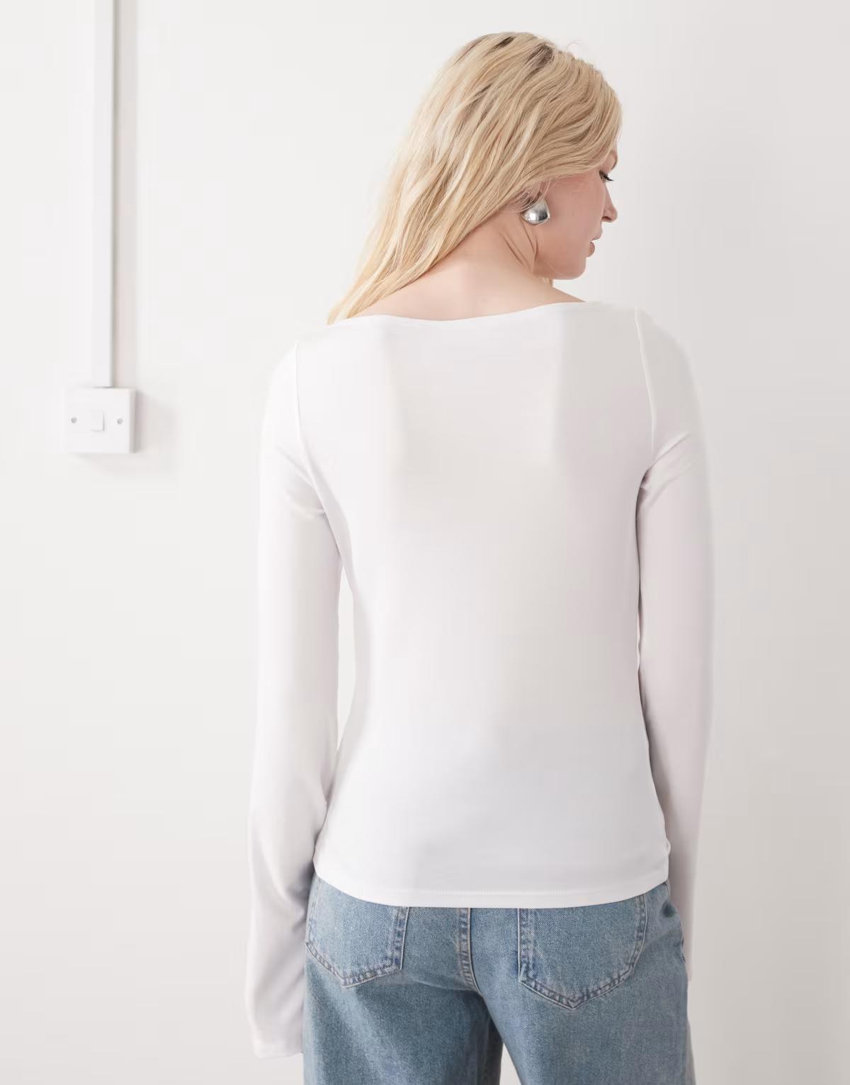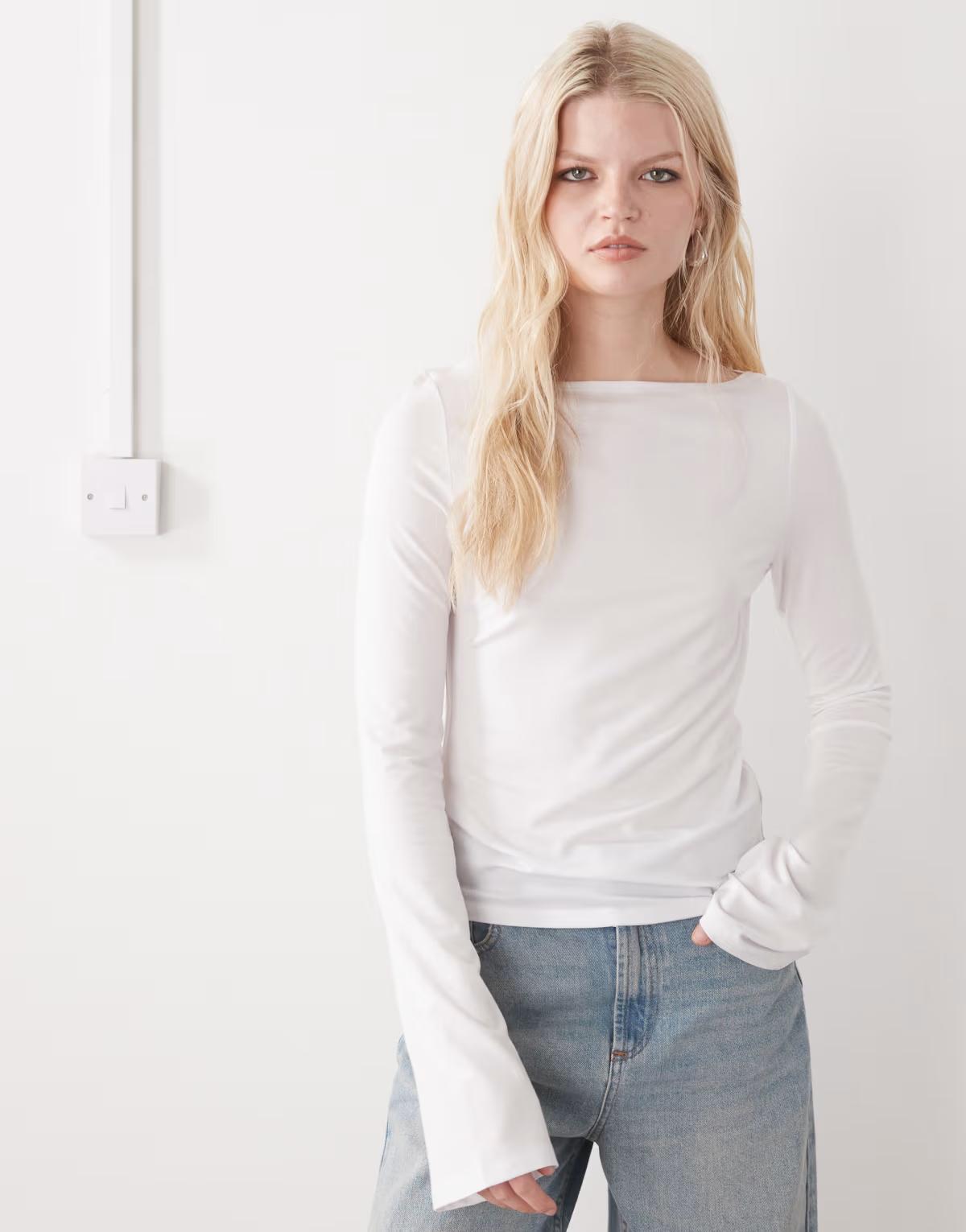 Weekday Annie super soft long sleeve boat neck top in white exclusive to ASOS