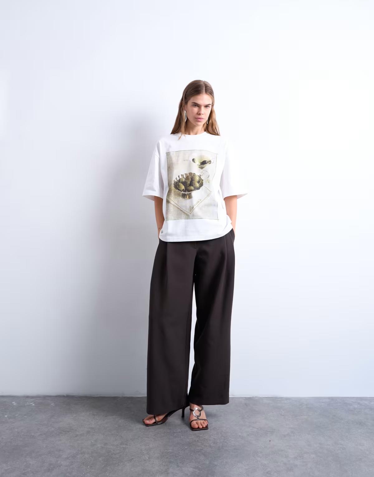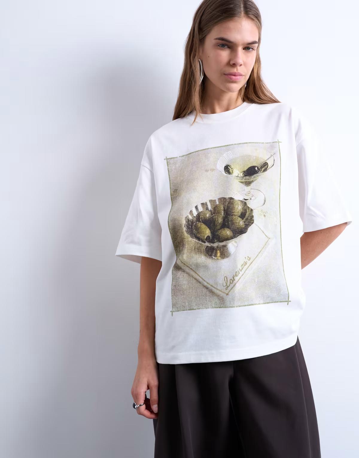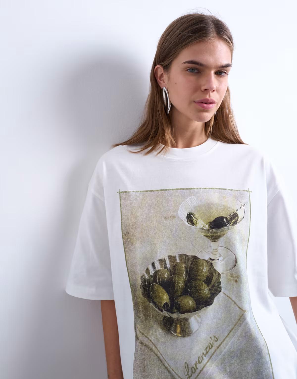 This T-shirt is crafted from a soft jersey with a martini print to the chest. It features a crew neck, short sleeves and is cut with an oversized fit.