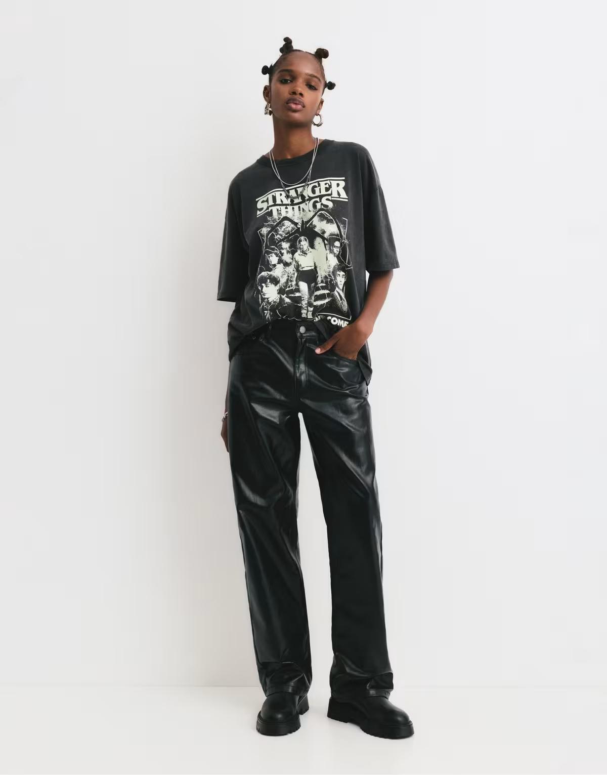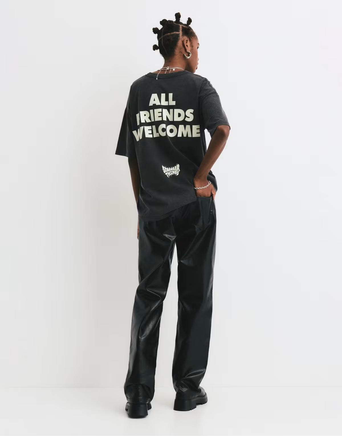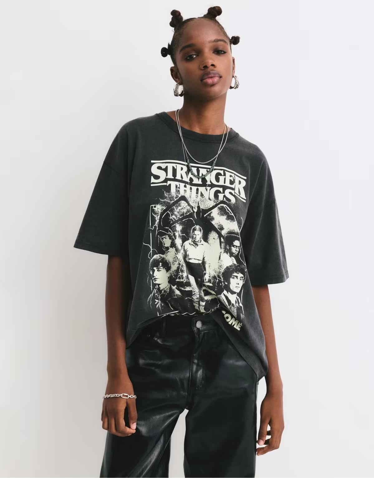 Pull&Bear Luminescent stranger things t-shirt in faded black