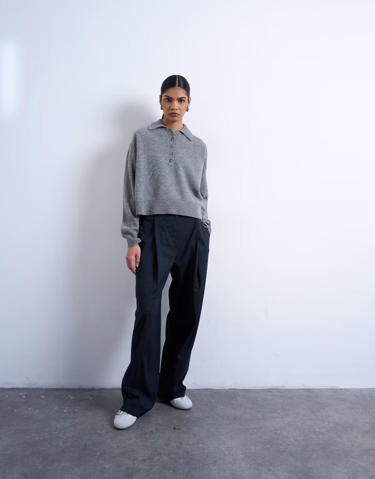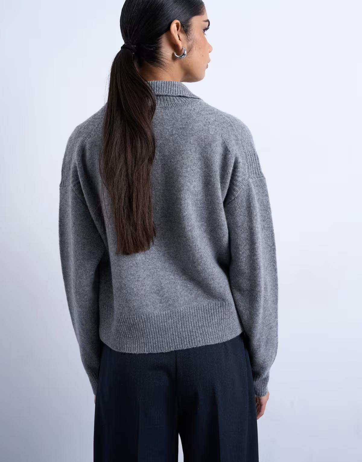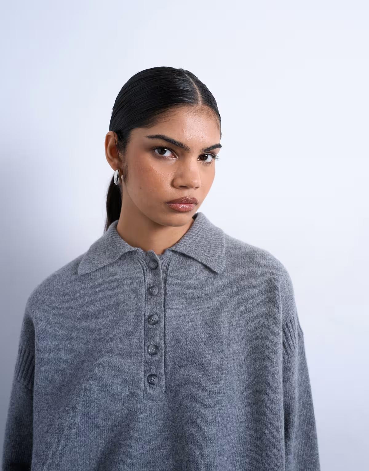 Topshop knitted premium 100% lambswool polo jumper in grey