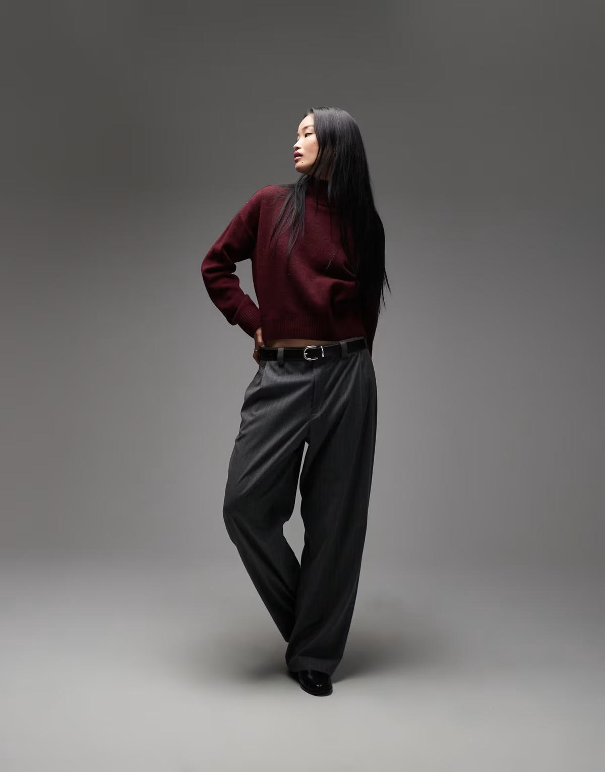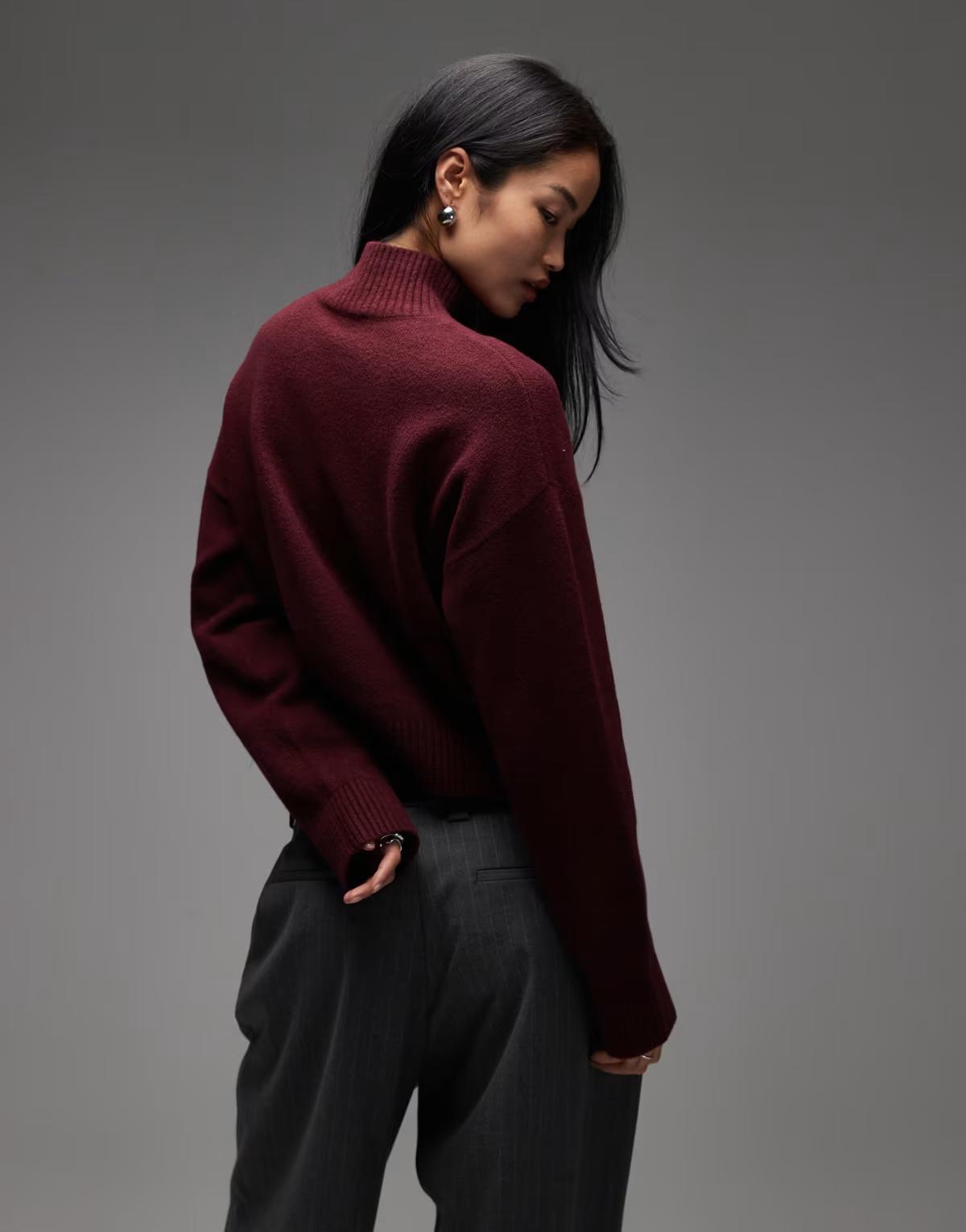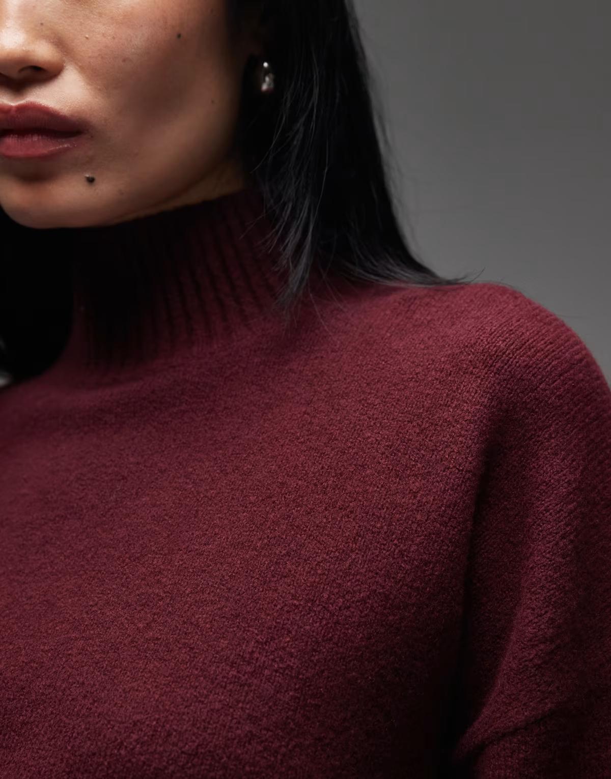 & Other Stories high neck relaxed knitted sweater in burgundy