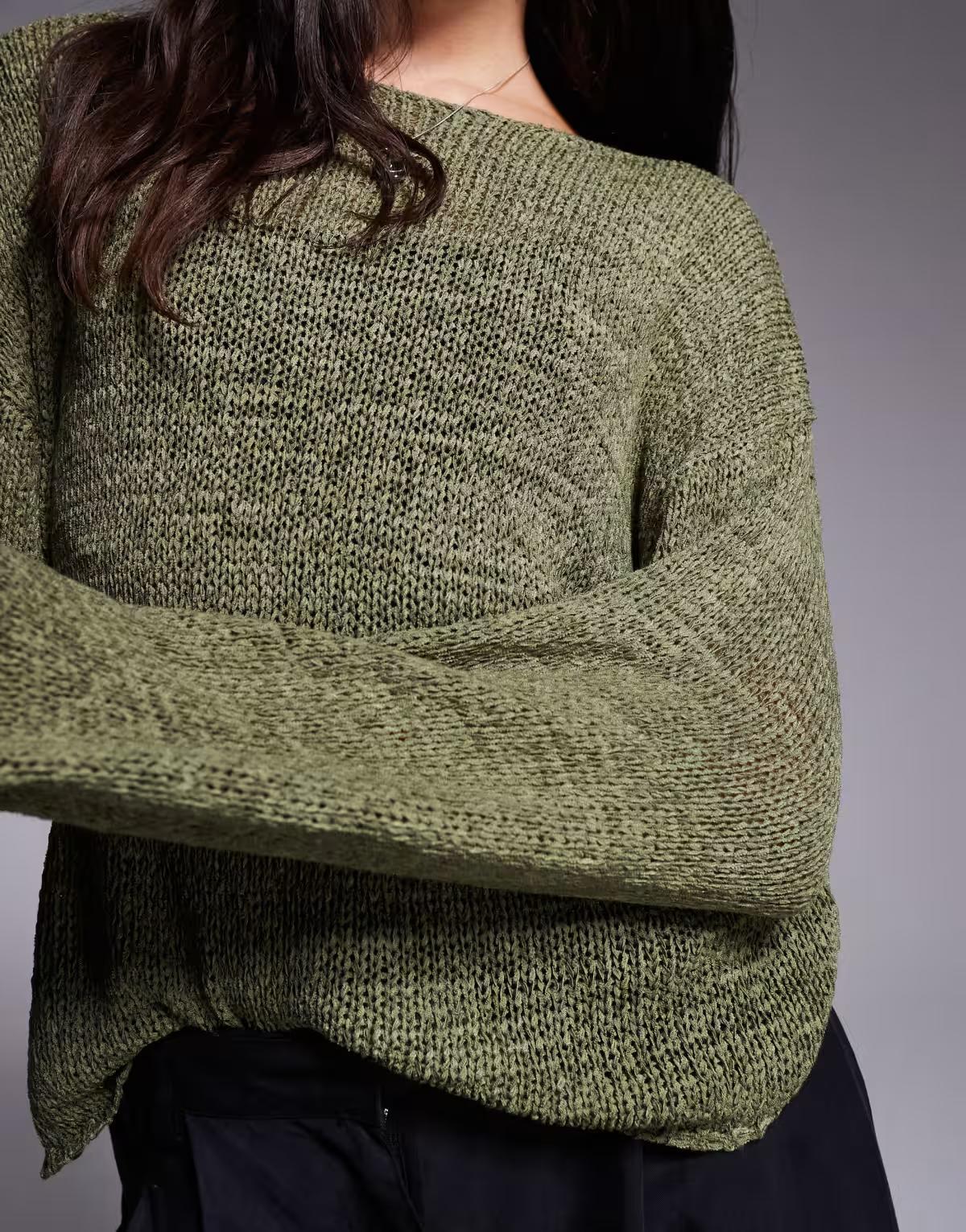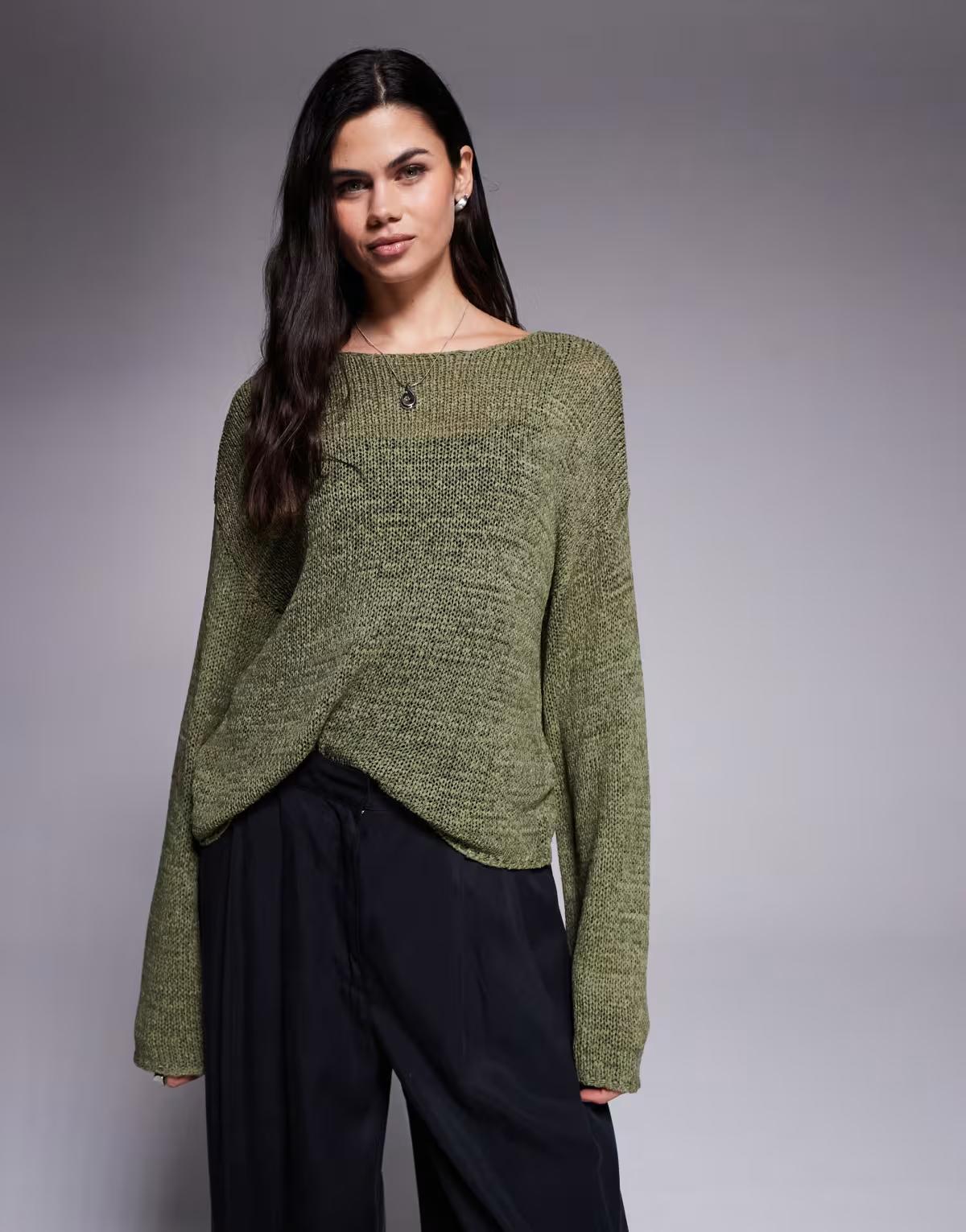 Edikted drop shoulder light knit sweater in khaki