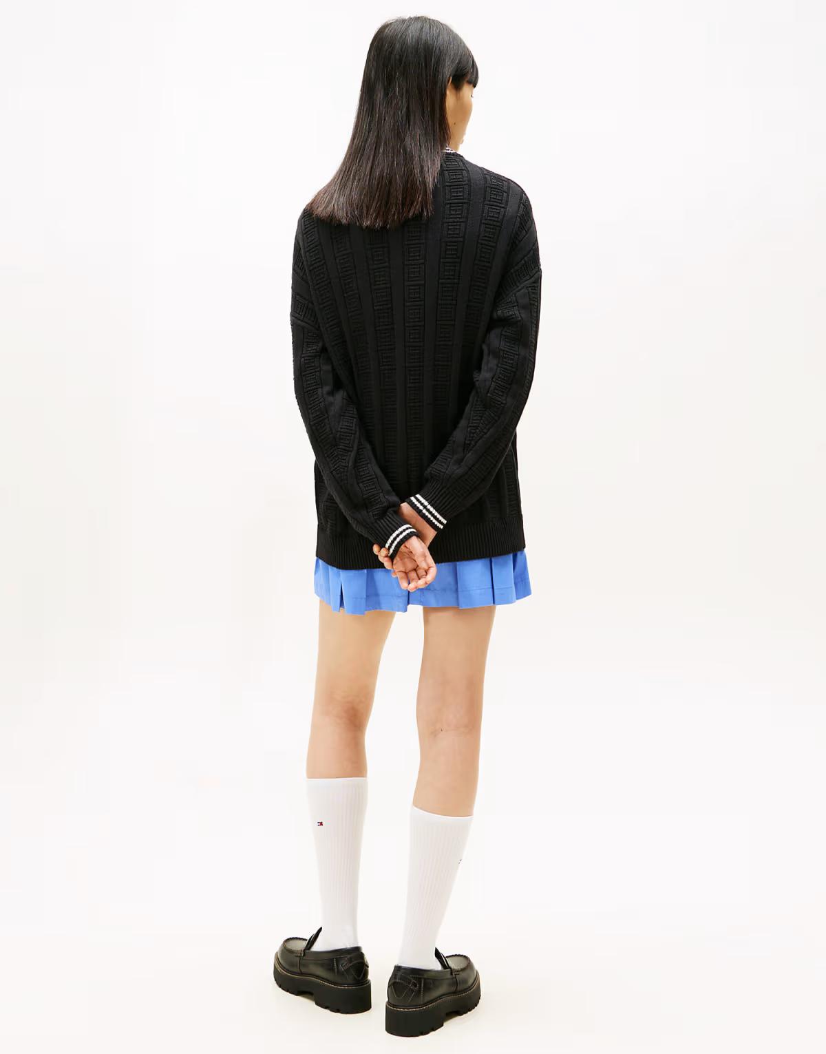 Tommy Jeans Flag cable knit relaxed cardigan in black