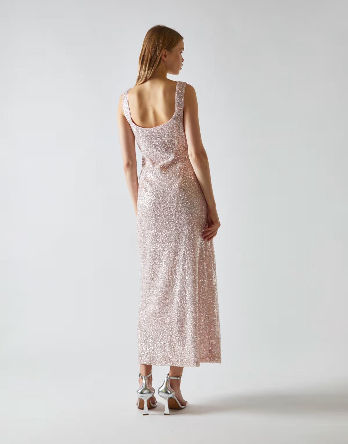 Glamorous Square-neck bias-cut midaxi-dress in pink silver sequin