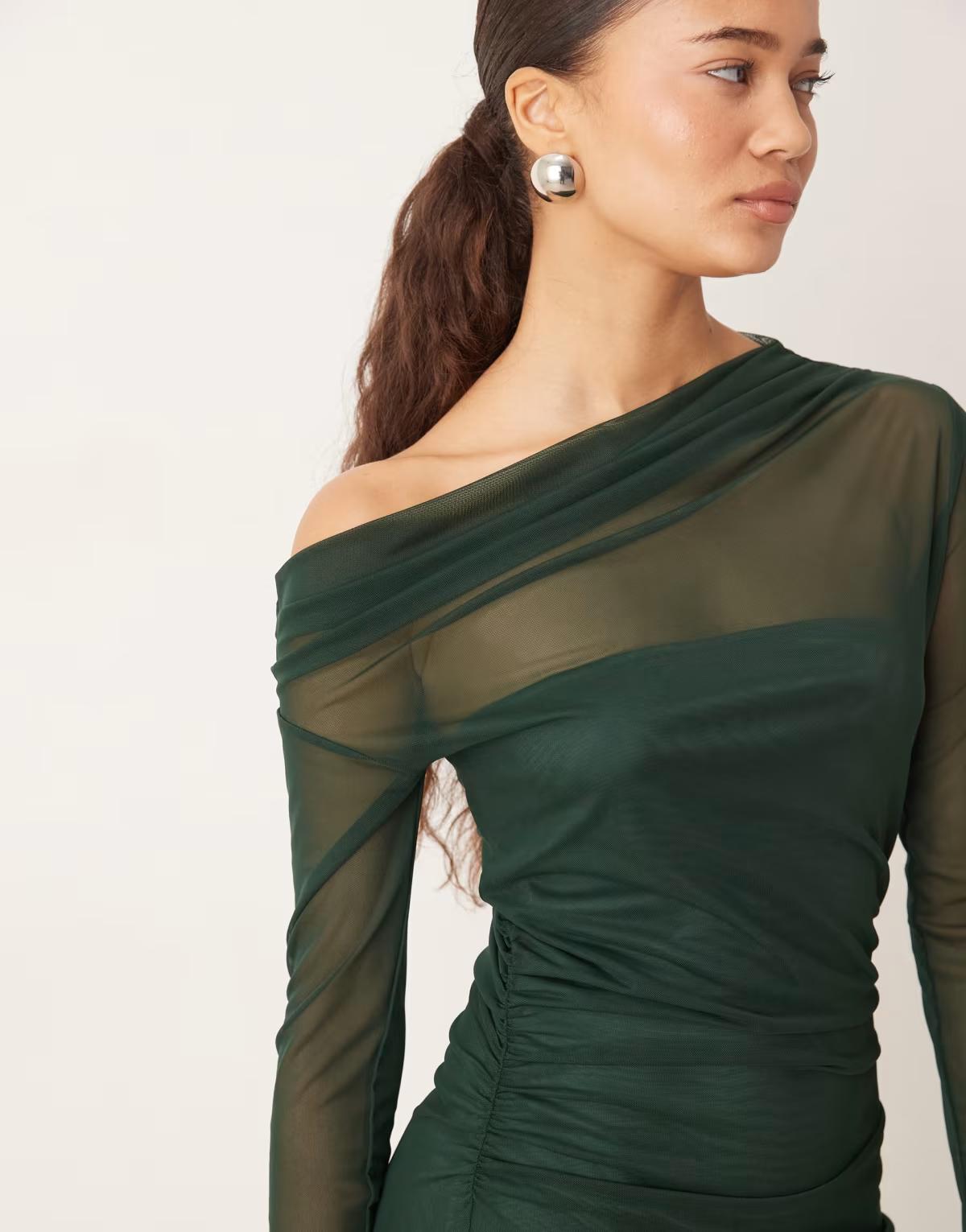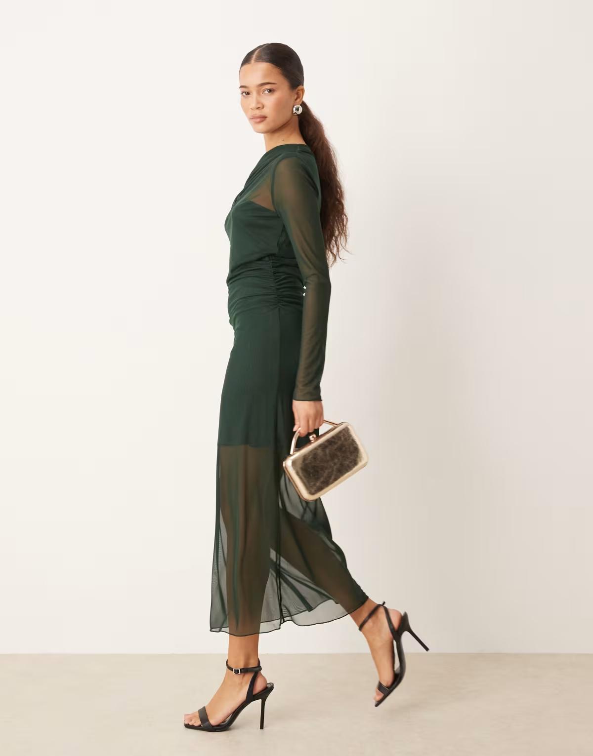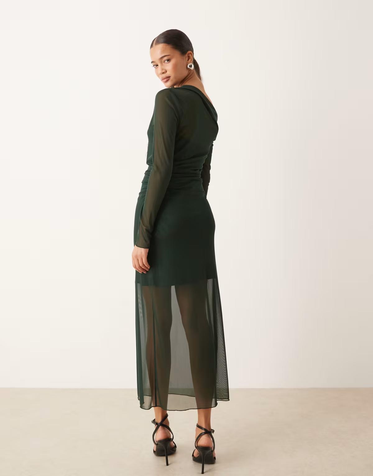 Mango asymmetric long sleeve maxi dress in forest green