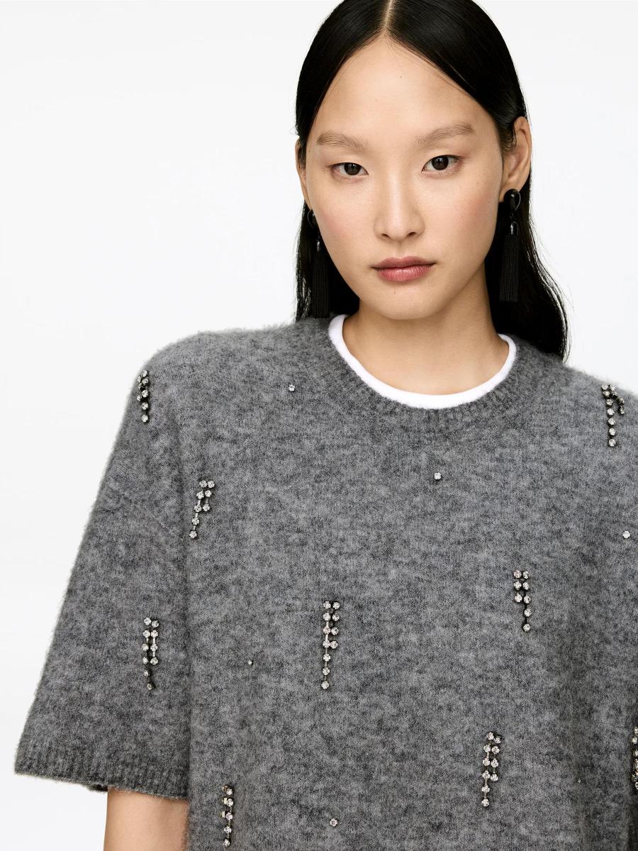Short-sleeved top knitted from an alpaca–wool blend. A festive design embellished throughout and finished with ribbed trims.ARKET/Women's clothes/Women's knitwear/Women's crew-neck jumpers