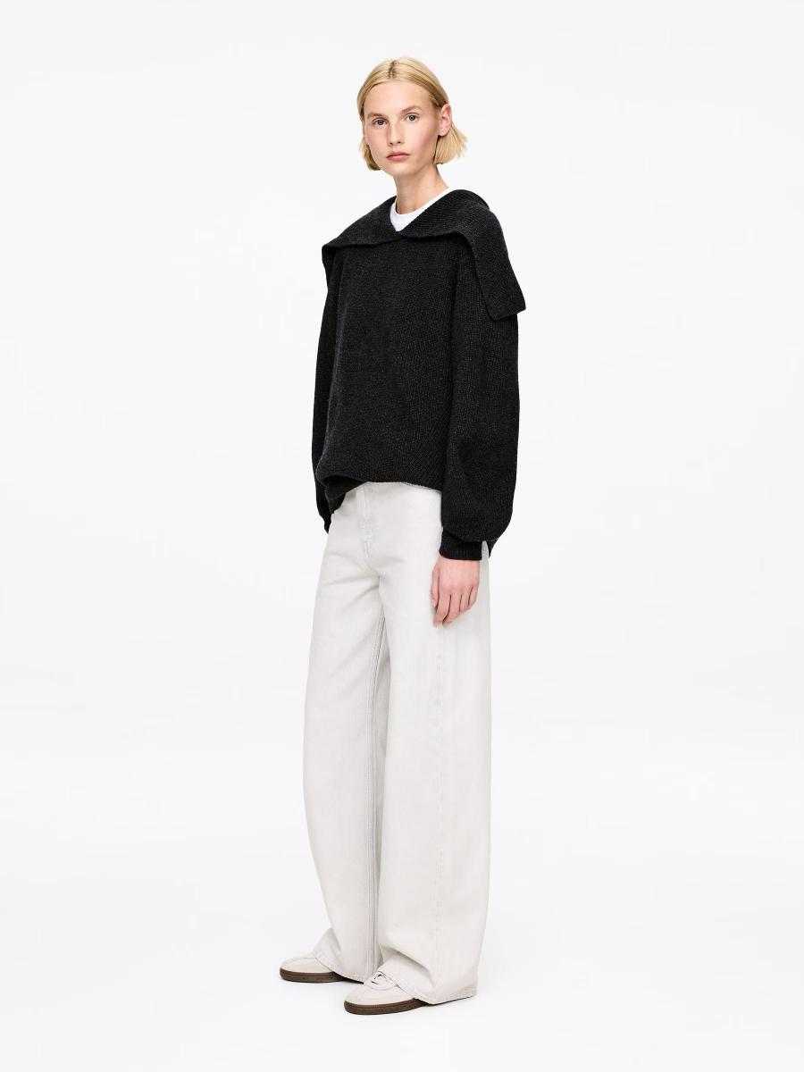 Relaxed jumper crafted from pure wool, designed with a buttoned high collar that can be worn up or folded down.ARKET/Women's clothes/Women's knitwear