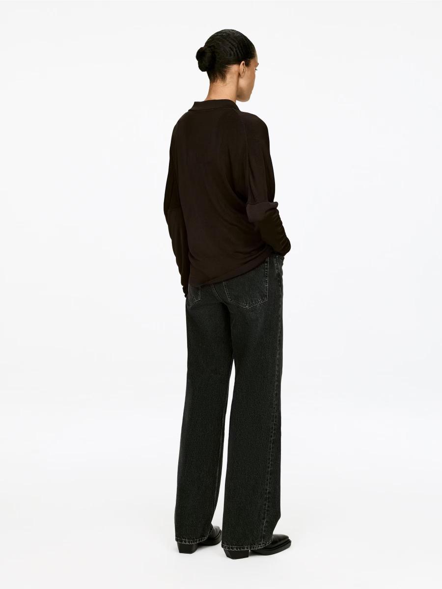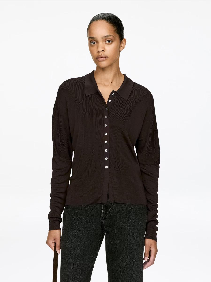 Fine-knitted shirt made of viscose, featuring French shoulders, a button closure, and a low classic shirt collar.ARKET/Women's clothes/Women's knitwear