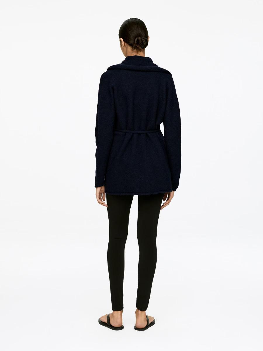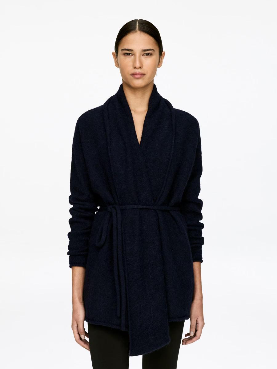 Loungewear cardigan knitted from an alpaca-wool blend. A throw on style with rolled edges at sleeve ends and bottom hem. Round knitted belt in shell fabric attached with thread belt loops at side seams. The cardigan contains 31% RWS wool (TE-00047206). Products certified to the Responsible Wool Standard (RWS) contain wool fiber from farms independently certified to animal welfare and land management requirements.ARKET/