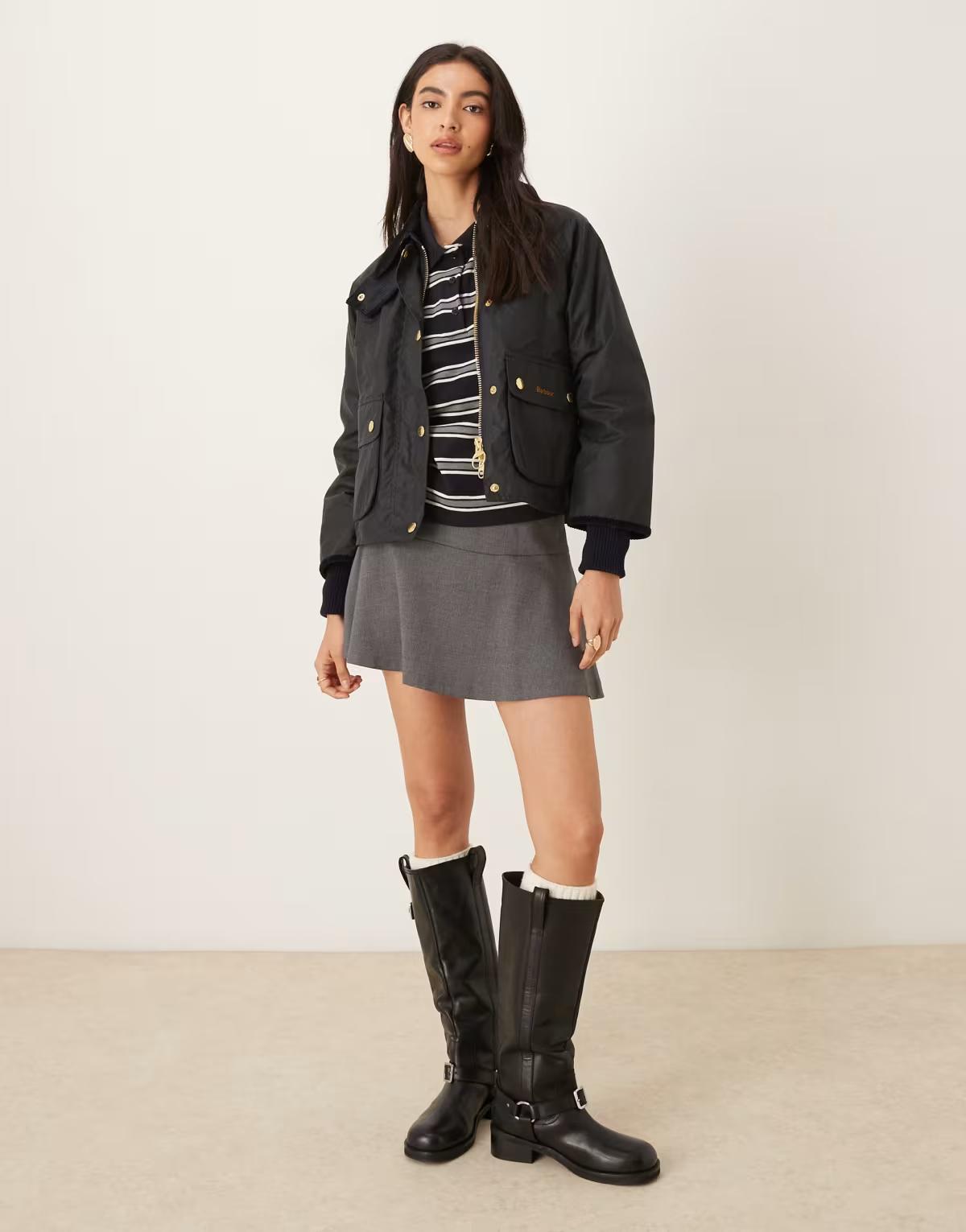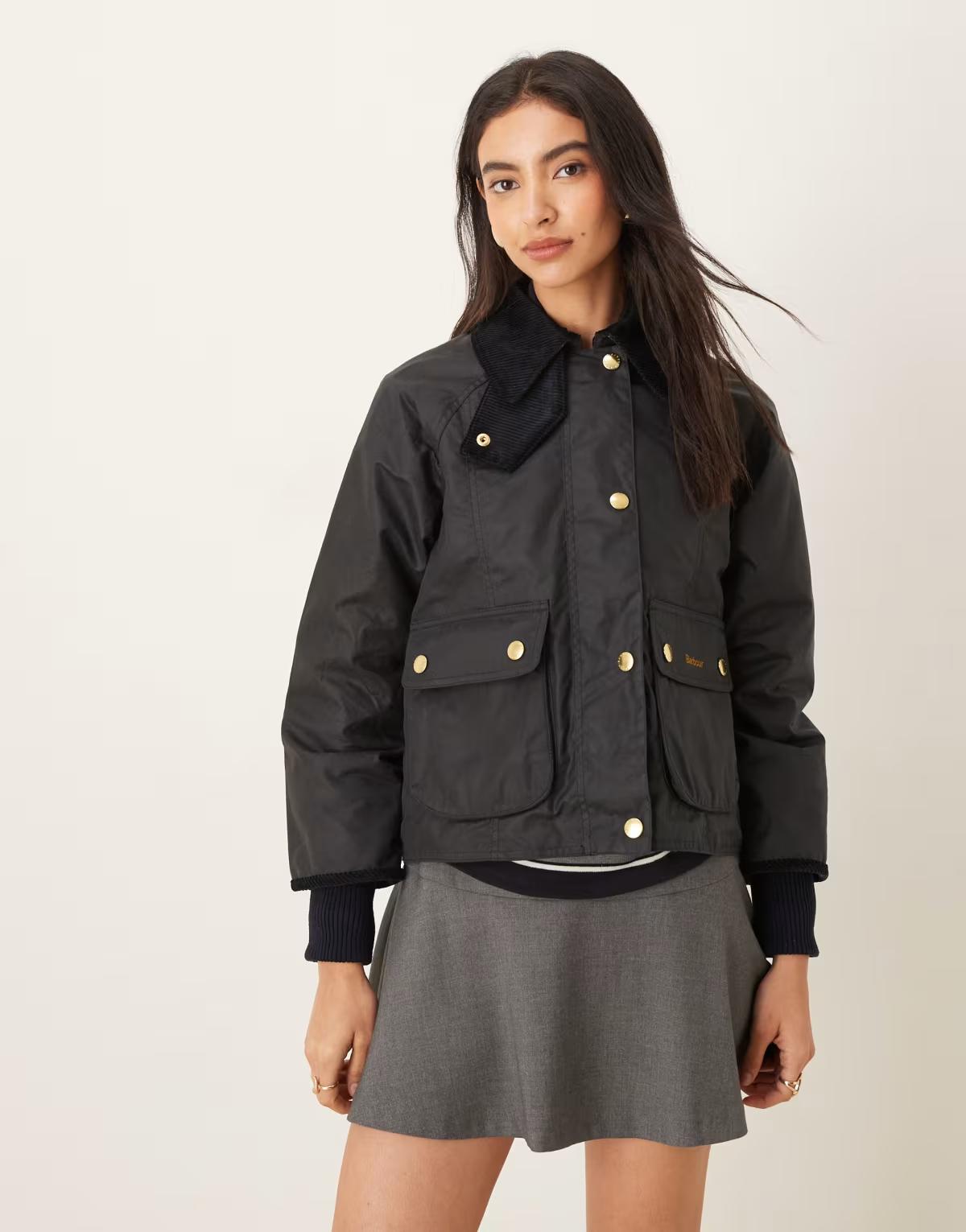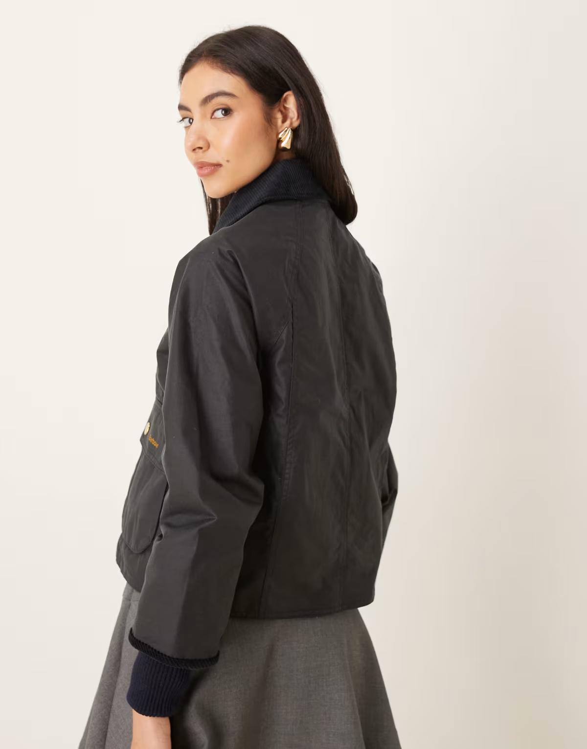 Barbour Cropped Beadnell wax jacket in navy/classic
