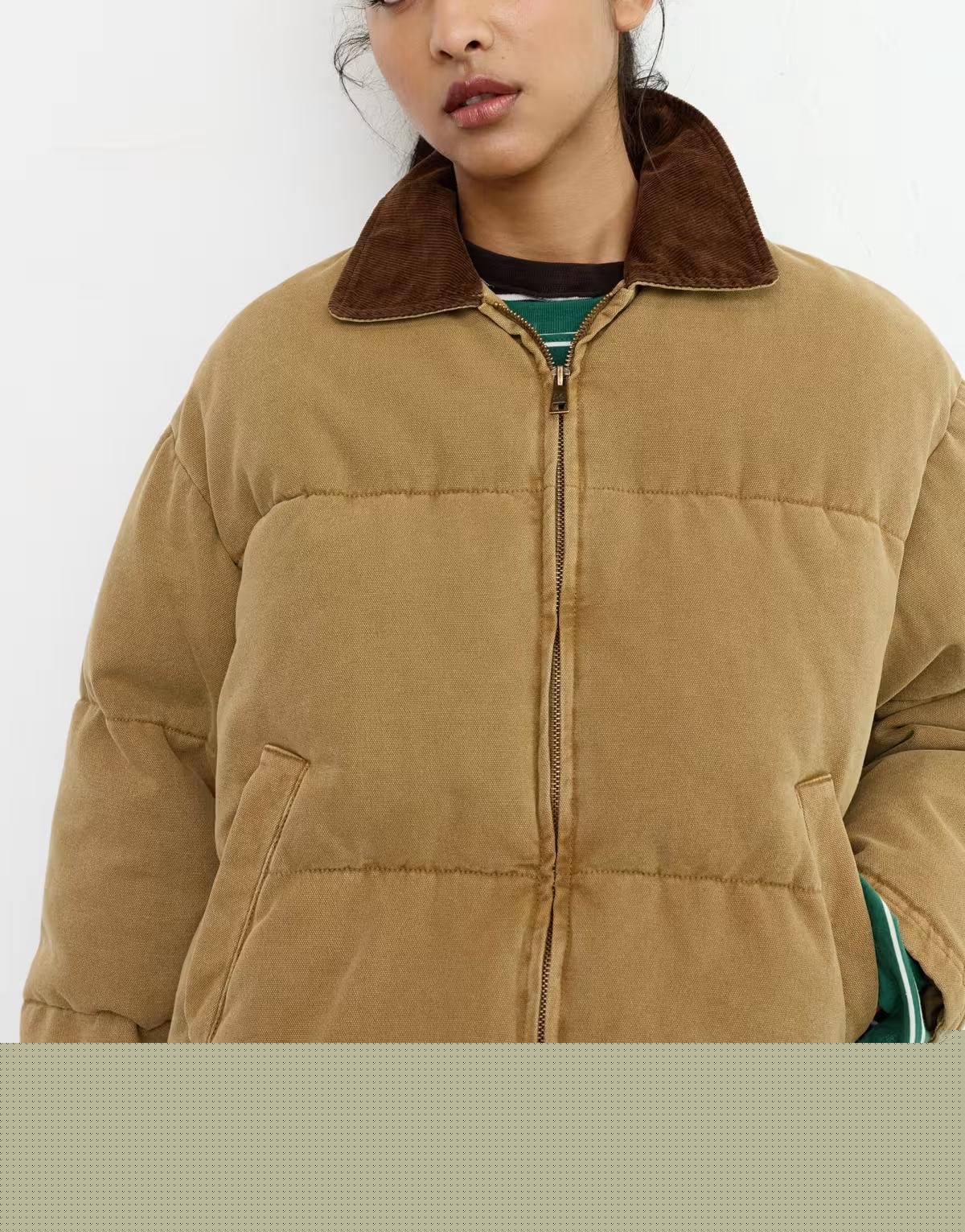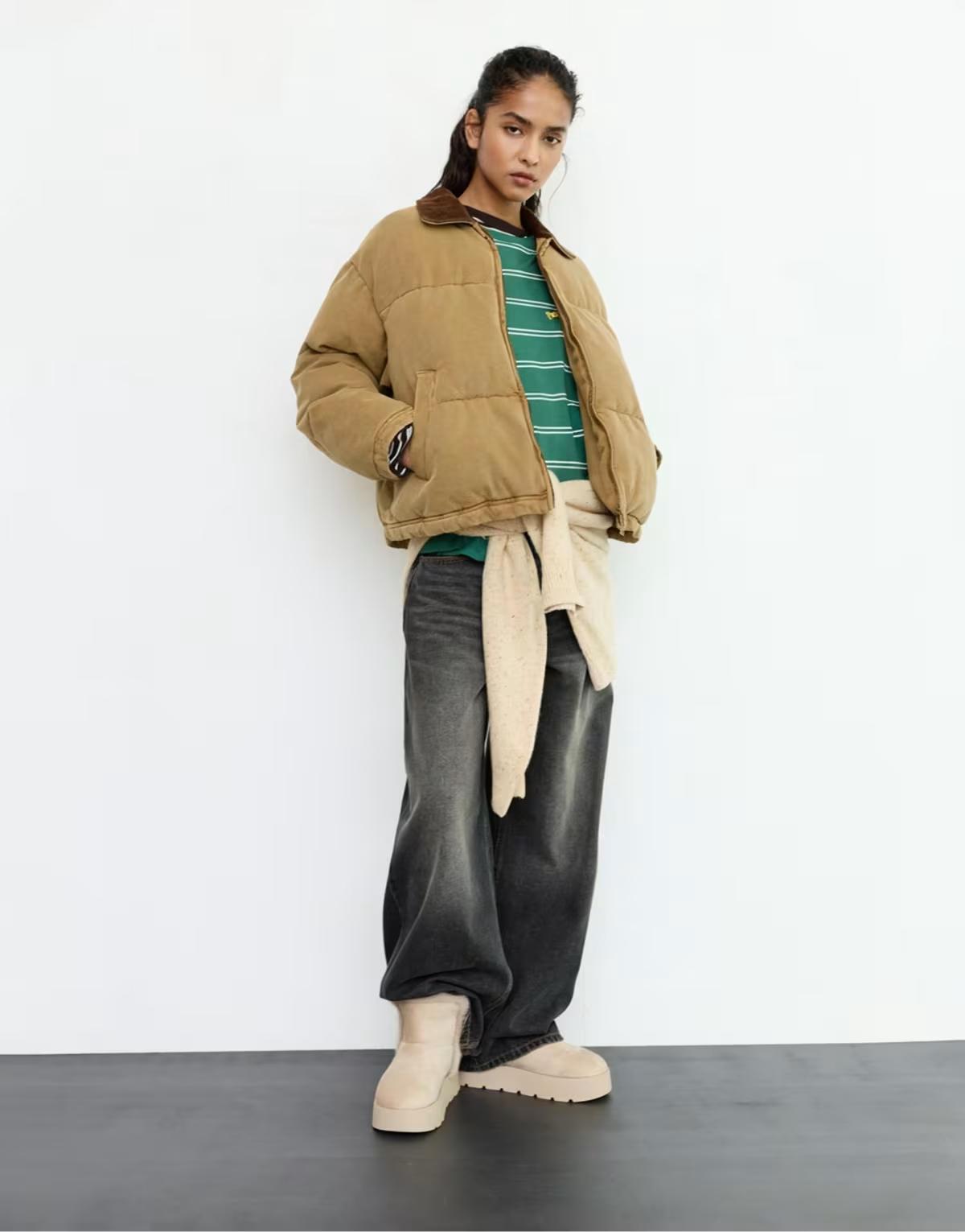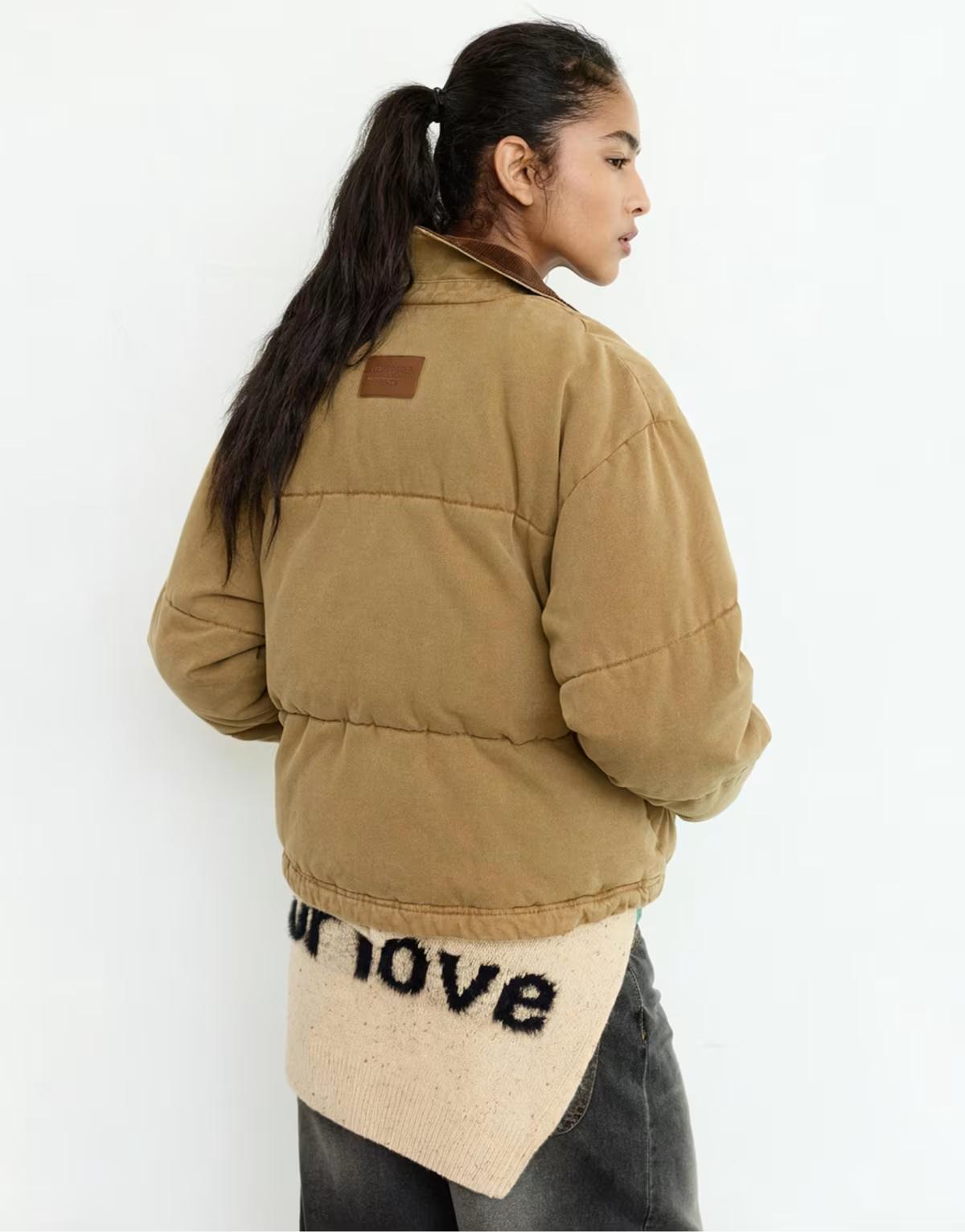 Pull&Bear Quilted jacket with a corduroy collar in ochre