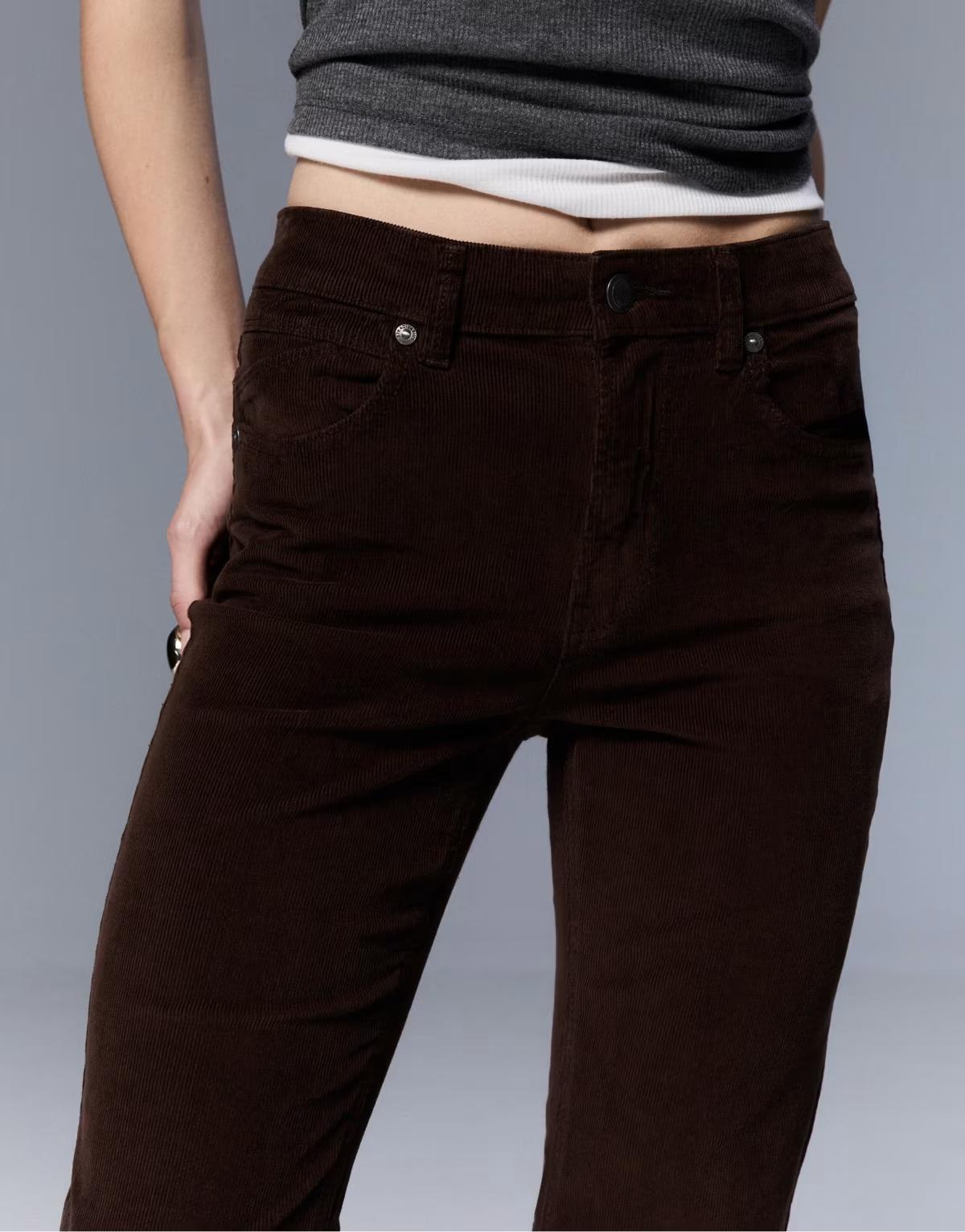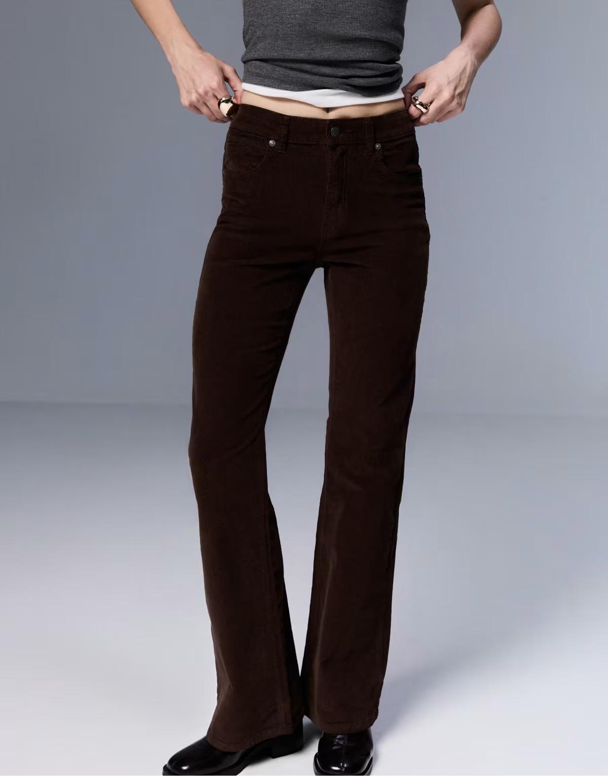 Stradivarius D74 corduroy bell bottom trousers in brown