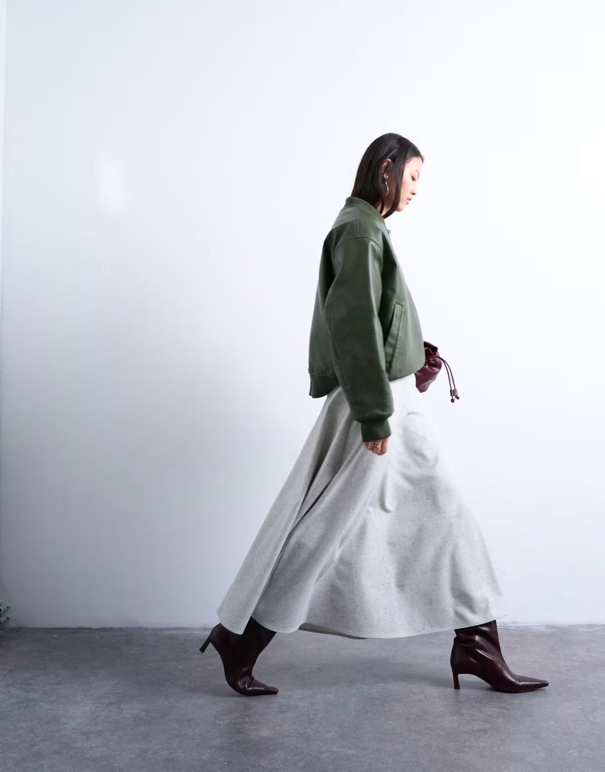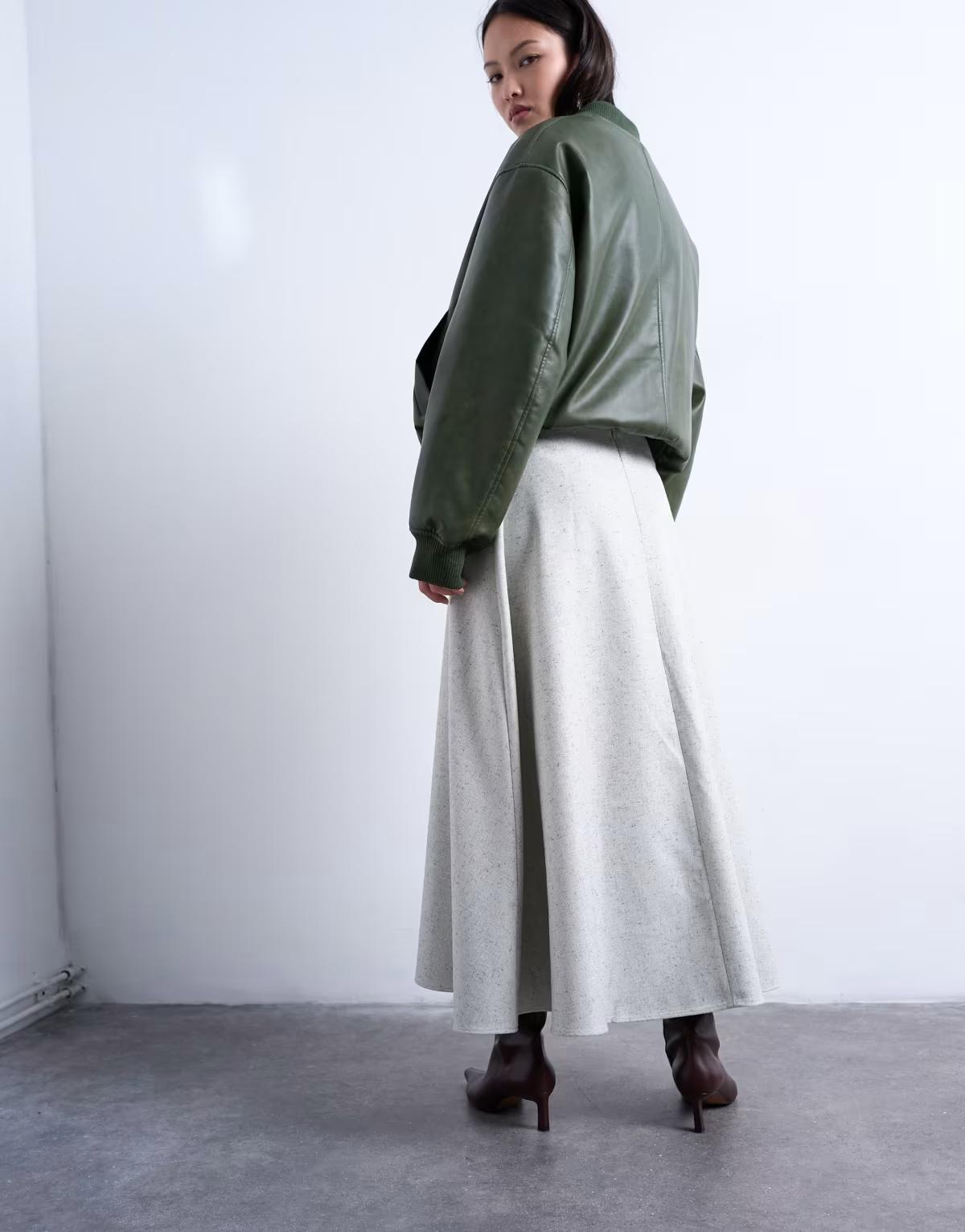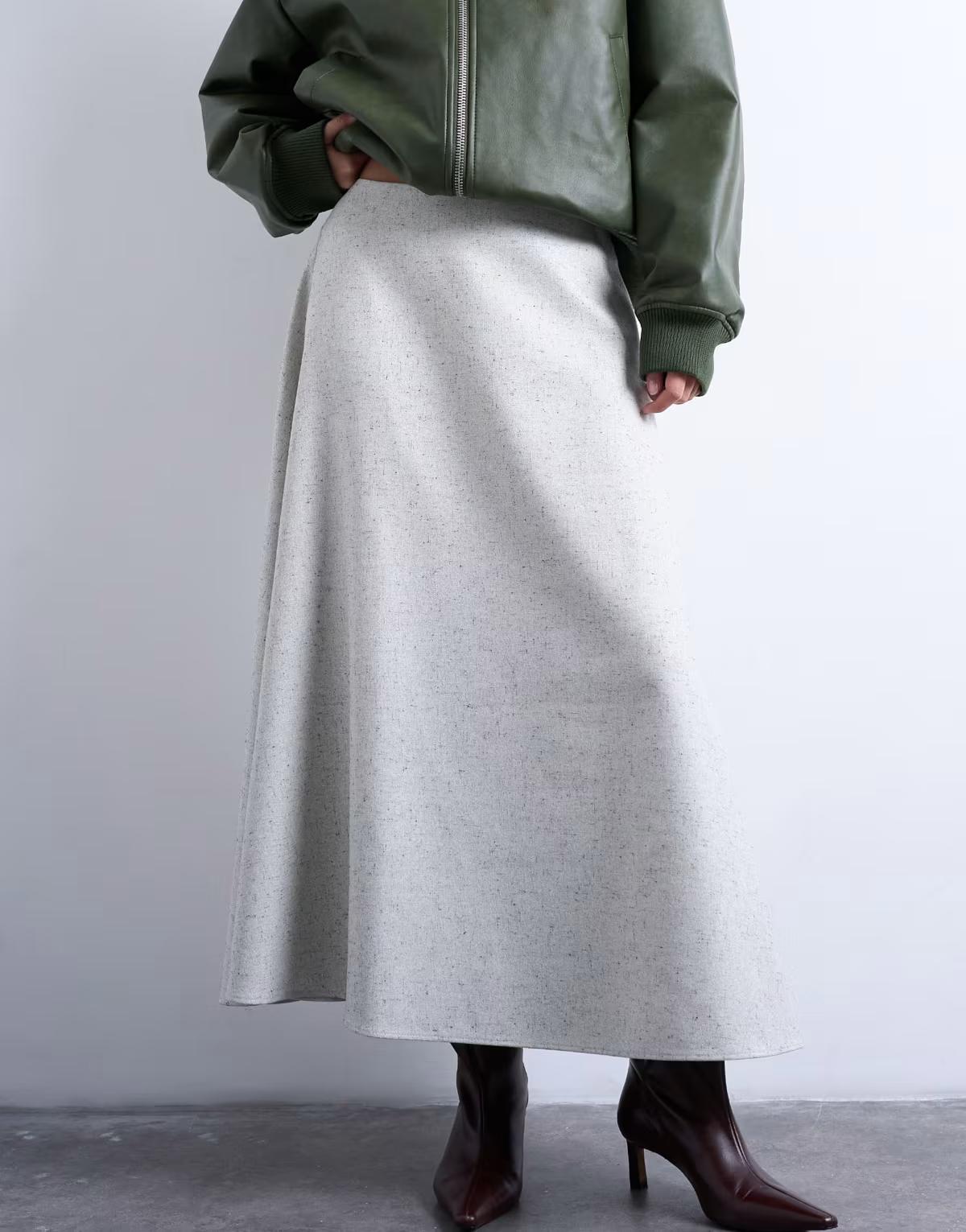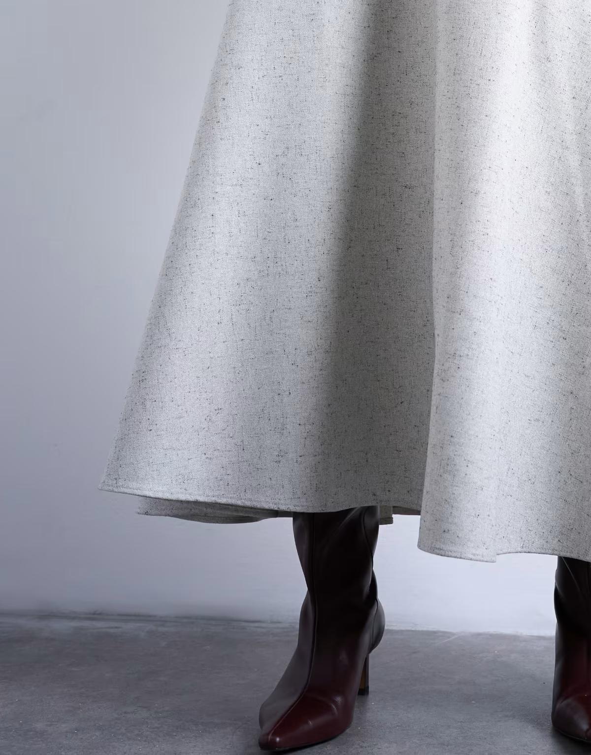 This versatile maxi skirt has a voluminous A-line silhouette. It is cut from a pale-grey woven fabric that finishes at the ankle.