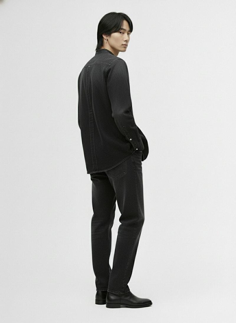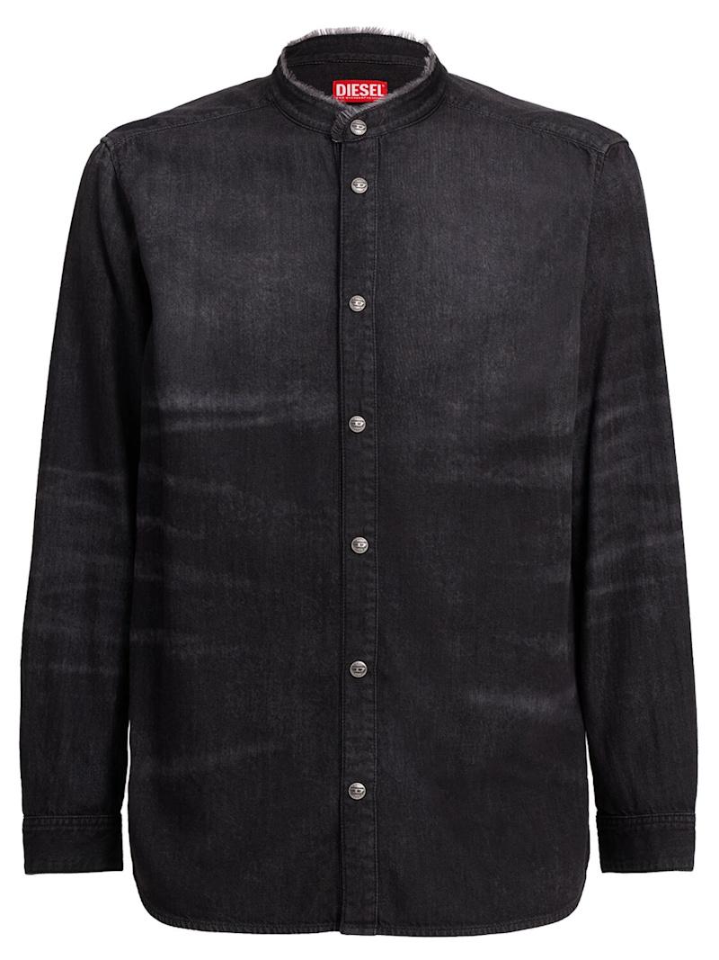 D-simply-fsh混棉牛仔衬衫 - 黑色 - 男士 - Diesel - 正面纽扣开合.