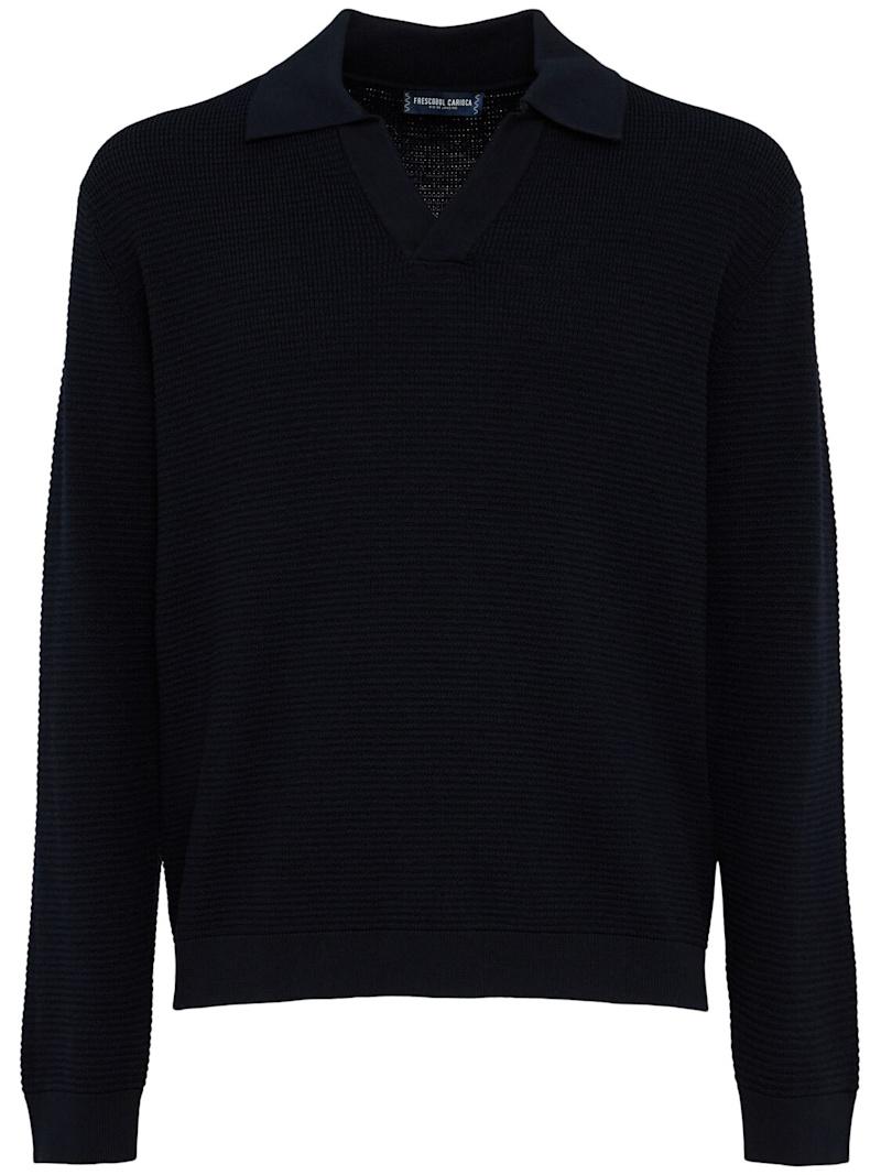 Orlando羊毛针织长袖POLO衫 - 海军蓝 - 男士 - Frescobol Carioca - 罗纹边缘
