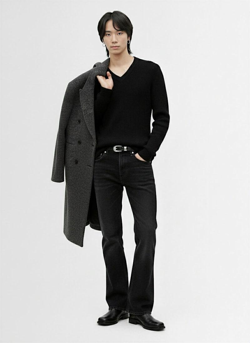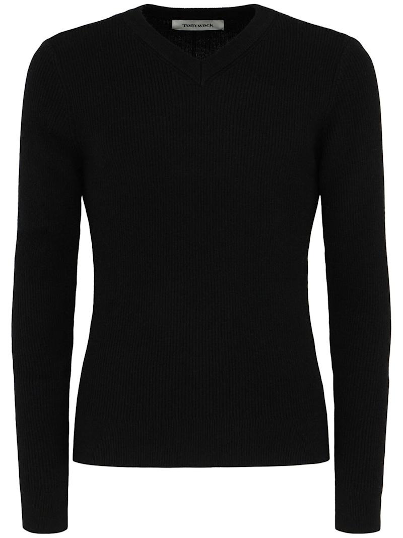 超精细羊毛罗纹V领毛衣 - 黑色 - 男士 - Tonywack - 罗纹领口、袖口和下摆