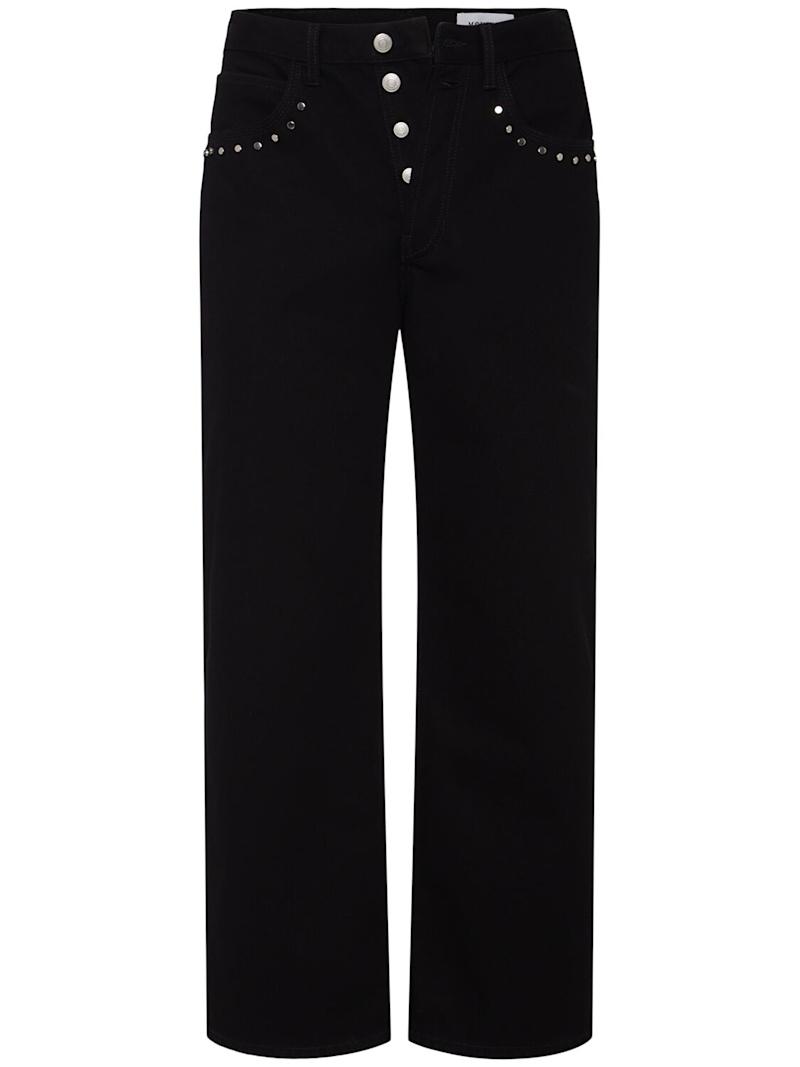 铆钉细节棉质牛仔裤 - 黑色 - 男士 - McQueen - 正面纽扣开合.